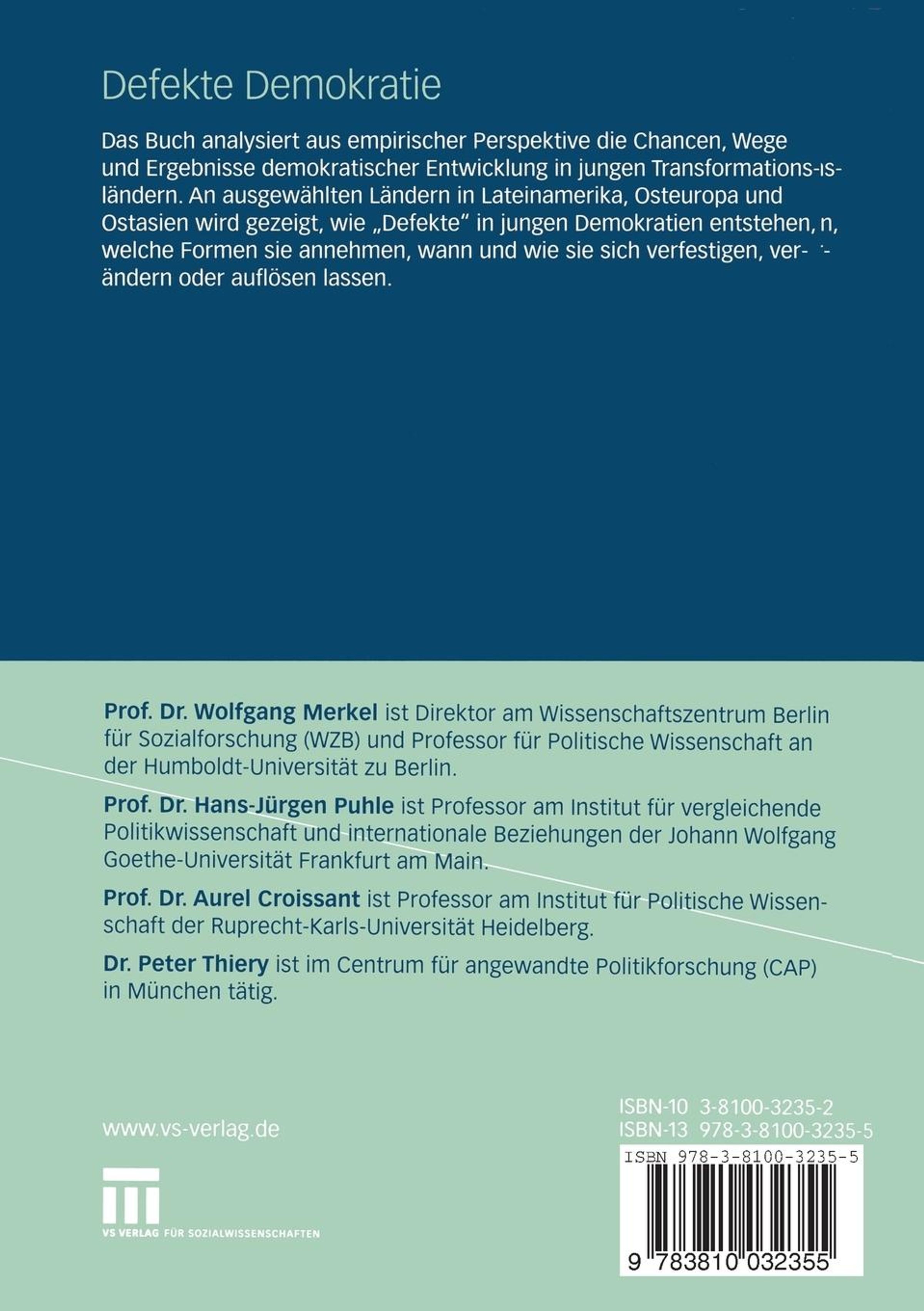 Dr. Wolfgang Merkel ist Professor für Politikwissenschaft am Institut für Politische Wissenschaft der Ruprecht-Karls-Universität Heidelberg.Biografie (Aurel Croissant)