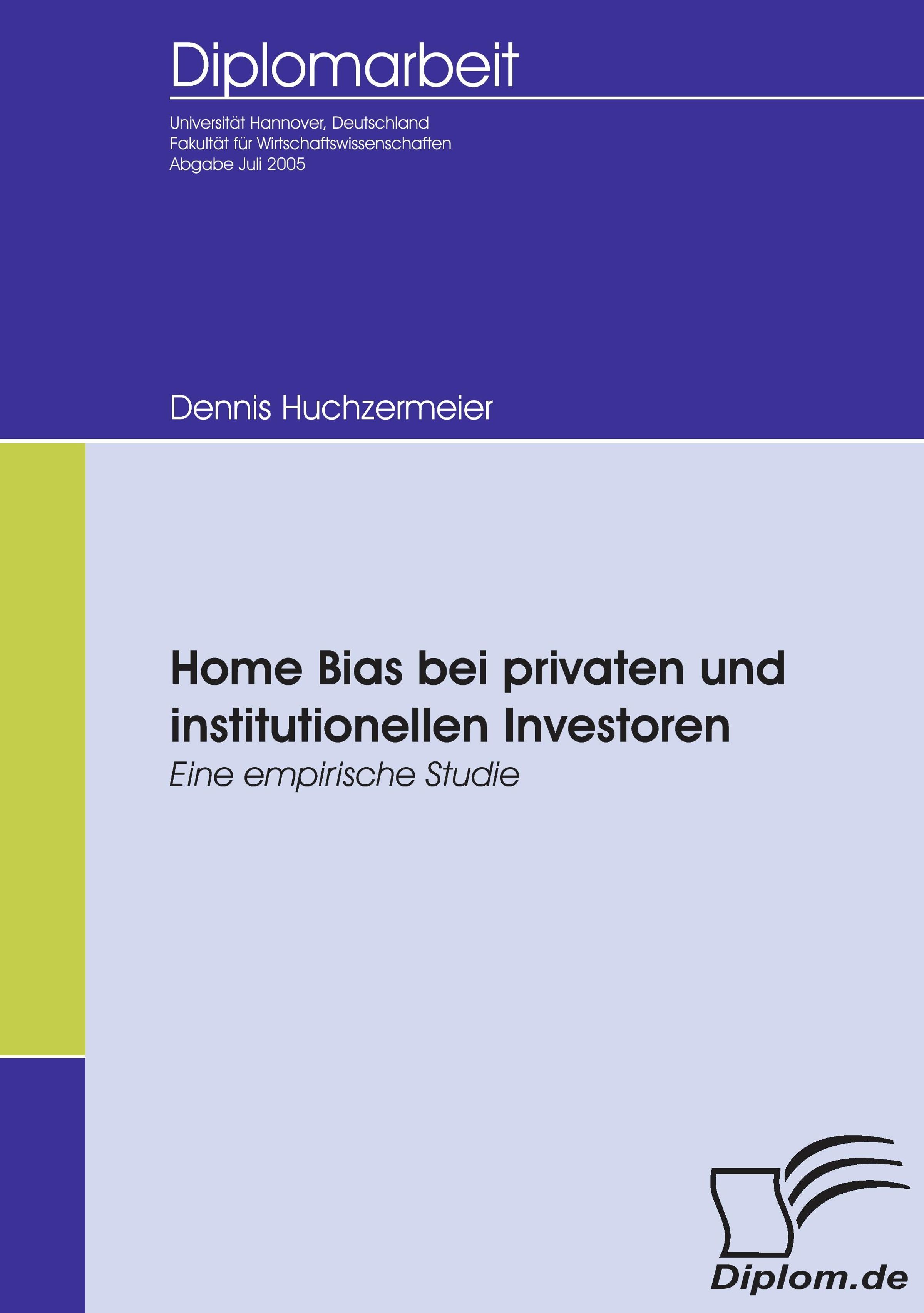 Aufgrund der zunehmenden Verflechtung der internationalen Volkswirtschaften ergeben sich für Investoren vermehrt Investmentalternativen. So ist es für Investoren einfacher geworden ihr Risiko bei der Anlage zu diversifizieren. Wie allerdings Menschen beispielsweise häufig Fan ihres lokalen Sportvereins sind, so belegen viele Studien, dass Investoren trotz zunehmender Investmentalternativen ebenso auf die internationale Streuung ihrer Investmentrisiken verzichten und einheimische Wertpapiere präferieren. Diese überproportionale Gewichtung einheimischer Anlagen wird allgemein als Home Bias bezeichnet und bedeutet einen zu hohen Anteil an einheimischen Wertpapieren im Portfolio. Hieraus resultieren eine suboptimale Diversifikation des Vermögens und das Akzeptieren von zusätzlichem Risiko. In der empirischen Analyse wurden 100 institutionelle Investoren und 397 Privatanleger befragt. Für die Identifikation von Home Bias wurde zum Vergleich das Weltmarktportfolio, angenähert durch den der MSCI World Index, herangezogen. Bei der Untersuchung wurde insbesondere zwischen dem Verhalten der Privatanleger und der institutionellen Investoren unterschieden. Die beiden Anlegergruppen wurden dabei nochmals nach ihrem beruflichen Umfeld und die institutionellen Investoren ergänzend noch nach ihrer beruflichen Hierarchiestufe unterteilt. Die Kernfrage der ausgewerteten empirischen Untersuchung war, wie die tatsächliche internationale Asset Allocation der befragten Investoren aussieht. Existiert ein Home Bias und welche Faktoren könnten für dieses Verhalten verantwortlich sein? Als Ergebnis kam heraus, dass knapp 97 Prozent der befragten Investoren Home Bias aufwiesen. Dieser war bei den beiden Investorengruppen allerdings unterschiedlich ausgeprägt. In der wissenschaftlichen Literatur ist der Home Bias relativ gut untersucht. Es gibt eine Reihe von potentiellen Erklärungen, wobei sich zwei Erklärungen als deren Hauptbestandteil herauskristallisiert haben. Sowohl in den vielfältigen Aufsätzen der wissenschaftlichen Literatur als auch in der durchgeführten empirischen Untersuchung zeigt sich, dass Investoren zwar angeben an einen Informationsvorteil zu glauben, ihr Verhalten aber insgesamt dagegen spricht. Auf der anderen Seite ist ein relativer Renditeoptimismus von Bedeutung. Bestätigt werden konnte in der Analyse aber nur ein absoluter Optimismus der deutschen Investoren, welcher maximal als Indiz für relativen Optimismus gewertet werden darf. Etwas neuer sind dagegen verhaltensorientierte Erklärungsansätze, wie eine erhöhte Risikotoleranz der Investoren (bspw. Verlust- bzw. Risikoaversion), der Dispositionseffekt oder der Overconfidence Bias. Der Dispositionseffekt besagt, dass Investoren Wertpapiere, welche relative Gewinne aufweisen, eher verkaufen, als Wertpapiere, welche relative Verluste aufweisen. Overconfidence bedeutet, dass Investoren ihre eigene Kompetenz verzerrt wahrnehmen. Sie überschätzen ihre Fähigkeiten und gehen ein zu hohes Risiko bei ihren Investments ein. Weitere Erklärungsversuche gründen auf dem Prognosehorizont der Investoren, der Quellen, aus denen die Investoren ihre Informationen gewinnen und der Analyseart welche sie bevorzugen (Fundamentalanalyse oder technische Analyse). Die Untersuchung liefert in dieser Hinsicht gemischte Ergebnisse für die verschiedenen Erklärungsansätze.