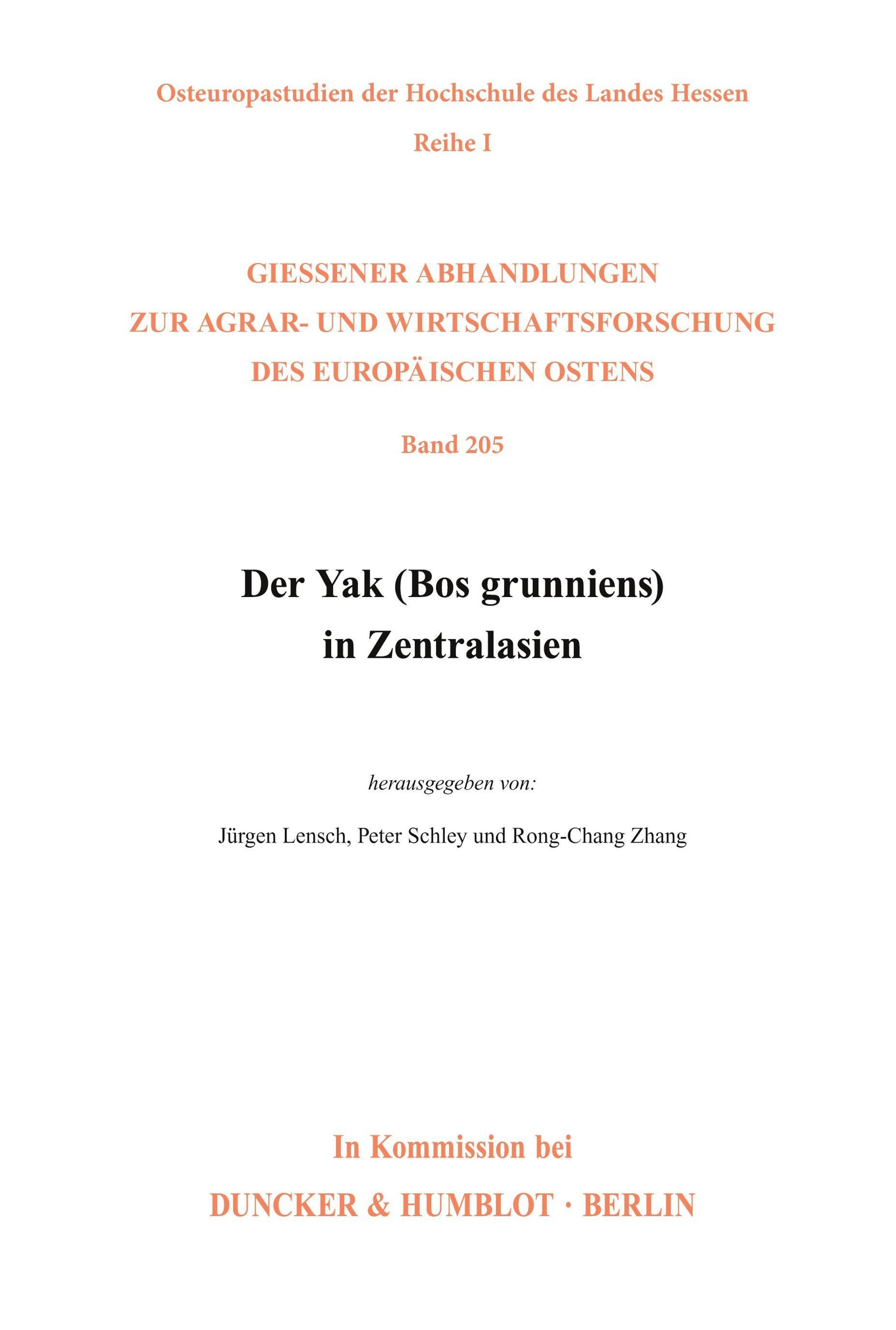 Der Yak (Bos grunniens) in Zentralasien., Kartoniert / Broschiert