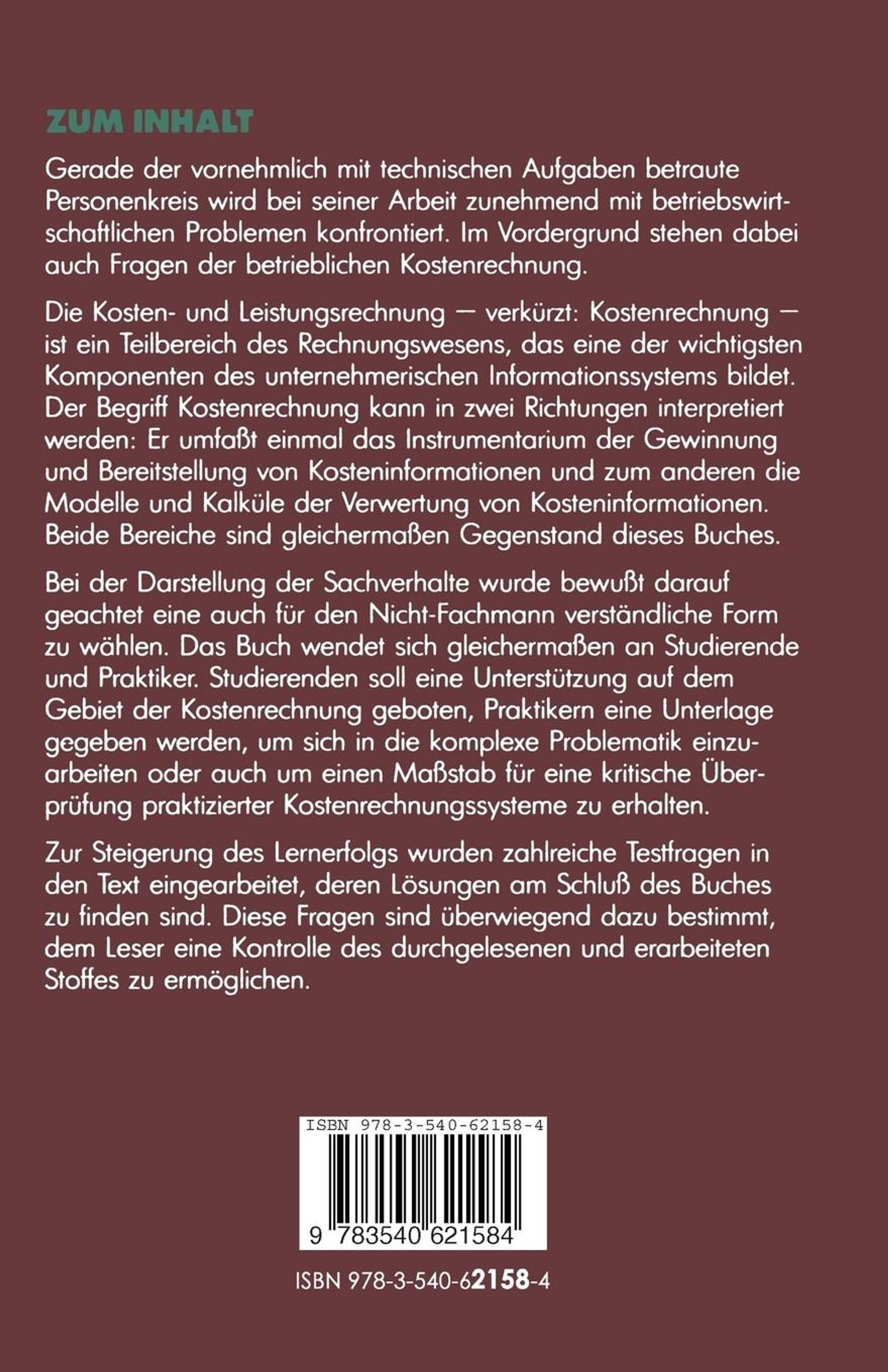 1. Kostenrechnung, Rechnungswesen und Controlling.- 1.1. Kostenrechnung und Rechnungswesen als Komponenten des Informationssystems der Unternehmung.- 1.2. Das Informationsprogramm des Rechnungswesens.- 1.2.1. Die Gliederung des Informationsprogramms nach den Zwecksetzungen der Informationsempfänger.- 1.2.1.1. Die unternehmungsextern bedingten Informationsansprüche.- 1.2.1.2. Die unternehmungsintern bedingten Informationsansprüche.- 1.2.2. Die Gliederung des Informationsprogramms nach Informationstypen.- 1.3. Die Organisationsstrukturen des Rechnungswesens.- 1.3.1. Das Rechnungswesen als organisatorische Einheit in der Unternehmung.- 1.3.2. Die traditionelle Struktur des Rechnungswesens.- 1.3.2.1. Finanzbuchhaltung.- 1.3.2.2. Kostenrechnung.- 1.3.2.3. Betriebswirtschaftliche Statistik.- 1.3.2.4. Planungsrechnung und Budgetierung.- 1.3.3. Probleme einer zweckorientierten Gliederung des Rechnungswesens.- 1.3.3.1. Externes und internes Rechnungswesen.- 1.3.3.2. Grundrechnungen und Sonderrechnungen.- 1.4. Die Kostenrechnung als Teil des Rechnungswesens.- 1.4.1. Zwischenergebnis zur Kennzeichnung und Abgrenzung der Kostenrechnung.- 1.4.2. Der Kostenbegriff im System der Grundbegriffe des Rechnungswesens.- 1.5. Internes Rechnungswesen und Kostenrechnung unter dem Primat des Controlling.- 2. Die konventionelle Kostenrechnung.- 2.1. Die Betriebsabrechnung.- 2.1.1. Die wichtigsten Aufgaben der Betriebsabrechnung.- 2.1.2. Erste Stufe des Fallbeispiels.- 2.1.2.1. Die Ermittlung der Gesamtkosten in der Kostenartenrechnung.- 2.1.2.2. Die Übernahme der Einzelkosten von der Kostenarten- in die Kostenträgerrechnung.- 2.1.2.3. Die Verteilung der Gemeinkosten mit Hilfe der Kostenstellenrechnung (BAB).- 2.1.2.4. Die Artikelkalkulation.- 2.1.2.5. Sonderfragen zur Betriebsabrechnung.- 2.1.2.6. Zusammenfassung der ersten Stufe.- 2.1.3. Zweite Stufe des Fallbeispiels.- 2.1.3.1. Die Stückkalkulation.- 2.1.3.2. Lagerbestandsrechnung, Betriebsgewinnermittlung und Abschluß.- 2.2. Die Teilgebiete der konventionellen Kosten- und Leistungsrechnung in vertiefender Darstellung.- 2.2.1. Die Kostenartenrechnung.- 2.2.2. Die Kostenstellenrechnung.- 2.2.2.1. Funktionen und Arten von Kostenstellen.- 2.2.2.2. Einteilung der Kostenstellenkosten.- 2.2.2.3. Innerbetriebliche Leistungsverrechnung.- 2.2.3. Die Formen der Kalkulation.- 2.2.3.1. Die Abhängigkeit der Kalkulationsform von der Fertigungsweise.- 2.2.3.2. Die Divisionskalkulation.- 2.2.3.3. Die Äquivalenzziffernkalkulation.- 2.2.3.4. Die Zuschlagskalkulation.- 2.2.3.5. Die Kalkulation mit Kostensätzen.- 2.2.3.6. Kalkulationsmethoden bei Komplementärproduktion.- 2.2.4. Die Verfahren der kurzfristigen Betriebsergebnisrechnung.- 2.2.4.1. Das Umsatzkostenverfahren.- 2.2.4.2. Das Gesamtkostenverfahren.- 2.2.4.3. Kritischer Verfahrensvergleich.- 2.2.4.4. Übungsaufgaben zur kurzfristigen Betriebsergebnisrechnung.- 3. Theoretische Grundlagen einer zweckorientierten Kostenrechnung.- 3.1. Die Probleme der Kostenrechnungstheorie.- 3.1.1. Begriff und Funktionen der Kostenrechnungstheorie.- 3.1.2. Die Abgrenzung von Kostenrechnungstheorie, Produktionsund Kostentheorie und Kostenrechnung.- 3.1.2.1. Der betriebliche Wertbewegungsprozeß als Untersuchungsobjekt von Produktionsund Kostentheorie und Kostenrechnung.- 3.1.2.2. Das System der Kosteneinflußfaktoren im Rahmen von Produktions- und Kostentheorie und Kostenrechnung.- 3.1.2.3. Die Interdependenzen zwischen der Produktionsund Kostentheorie und der Kostenrechnung.- 3.1.3. Die Fragestellungen der Kostenrechnungstheorie im Überblick.- 3.2. Die Bereiche und Zwecke der Kostenrechnung.- 3.2.1. Der Zuständigkeitsbereich der Kostenrechnung.- 3.2.2. Die Verwendungszwecke für Kosteninformationen.- 3.2.2.1. Die Verwertung von Kosteninformationen für die Planung und Entscheidung.- 3.2.2.2. Die Verwendung von Kosteninformationen zur Präsentation.- 3.3. Die Kostenrechnungsgrundsätze.- 3.3.1. Die Kostenrechnungsgrundsätze als fundamentale Aussagen der Kostenrechnung 1. Kostenrechnung, Rechnungswesen und Controlling.- 1.1. Kostenrechnung und Rechnungswesen als Komponenten des Informationssystems der Unternehmung.- 1.2. Das Informationsprogramm des Rechnungswesens.- 1.2.1. Die Gliederung des Informationsprogramms nach den Zwecksetzungen der Informationsempfänger.- 1.2.1.1. Die unternehmungsextern bedingten Informationsansprüche.- 1.2.1.2. Die unternehmungsintern bedingten Informationsansprüche.- 1.2.2. Die Gliederung des Informationsprogramms nach Informationstypen.- 1.3. Die Organisationsstrukturen des Rechnungswesens.- 1.3.1. Das Rechnungswesen als organisatorische Einheit in der Unternehmung.- 1.3.2. Die traditionelle Struktur des Rechnungswesens.- 1.3.2.1. Finanzbuchhaltung.- 1.3.2.2. Kostenrechnung.- 1.3.2.3. Betriebswirtschaftliche Statistik.- 1.3.2.4. Planungsrechnung und Budgetierung.- 1.3.3. Probleme einer zweckorientierten Gliederung des Rechnungswesens.- 1.3.3.1. Externes und internes Rechnungswesen.- 1.3.3.2. Grundrechnungen und Sonderrechnungen.- 1.4. Die Kostenrechnung als Teil des Rechnungswesens.- 1.4.1. Zwischenergebnis zur Kennzeichnung und Abgrenzung der Kostenrechnung.- 1.4.2. Der Kostenbegriff im System der Grundbegriffe des Rechnungswesens.- 1.5. Internes Rechnungswesen und Kostenrechnung unter dem Primat des Controlling.- 2. Die konventionelle Kostenrechnung.- 2.1. Die Betriebsabrechnung.- 2.1.1. Die wichtigsten Aufgaben der Betriebsabrechnung.- 2.1.2. Erste Stufe des Fallbeispiels.- 2.1.2.1. Die Ermittlung der Gesamtkosten in der Kostenartenrechnung.- 2.1.2.2. Die Übernahme der Einzelkosten von der Kostenarten- in die Kostenträgerrechnung.- 2.1.2.3. Die Verteilung der Gemeinkosten mit Hilfe der Kostenstellenrechnung (BAB).- 2.1.2.4. Die Artikelkalkulation.- 2.1.2.5. Sonderfragen zur Betriebsabrechnung.- 2.1.2.6. Zusammenfassung der ersten Stufe.- 2.1.3. Zweite Stufe des Fallbeispiels.- 2.1.3.1. Die Stückkalkulation.- 2.1.3.2. Lagerbestandsrechnung, Betriebsgewinnermittlung und Abschluß.- 2.2. Die T