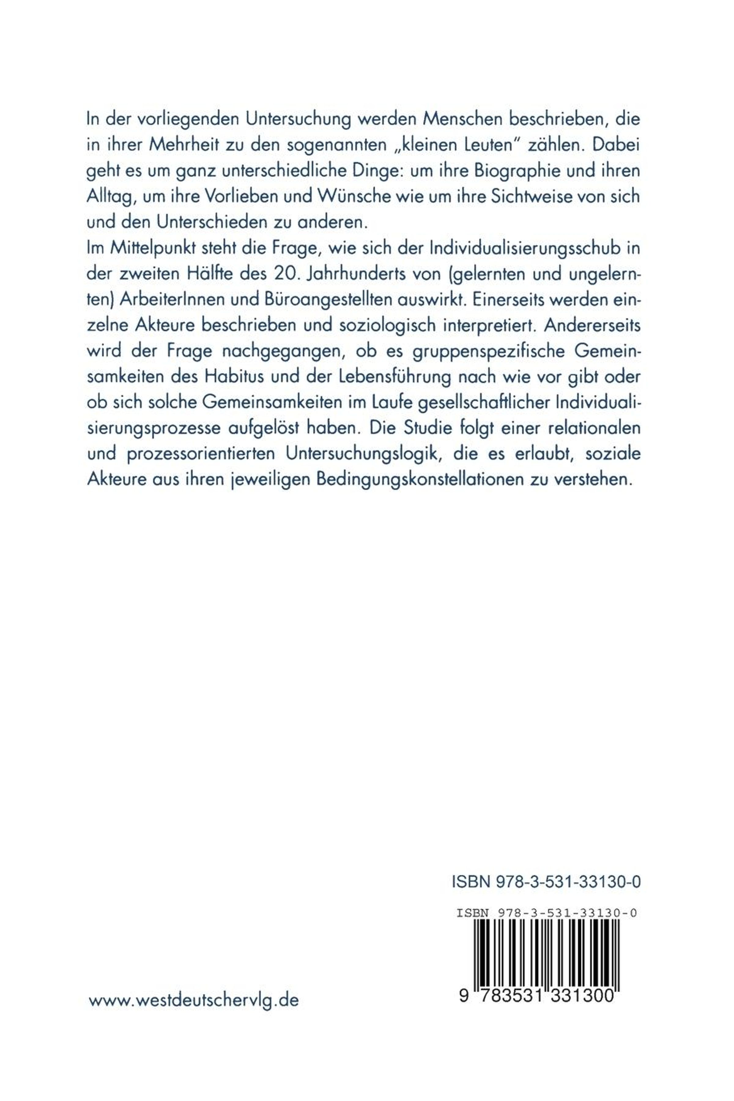 In der vorliegenden Untersuchung werden Menschen beschrieben, die in ihrer Mehrheit zu den sogenannt "kleinen Leuten" zählen. Dabei geht es um ganz unterschiedliche Dinge: um ihre Biographie und ihren Alltag, um ihre Vorlieben und Wünsche wie um ihre Sichtweise von sich und der Unterschiede zu andern. Im Mittelpunkt steht die Frage, wie sich der Individualisierungsschub in der zweiten Hälfte des 20. Jahrhunderts auf die Biographie, die alltägliche Lebensführung und den Habitus von (gelernten und ungelernten) ArbeiterInnen und Büroangestellten ausgewirkt hat. Einerseits werden einzelne Akteure beschrieben und soziologisch interpretiert. Andererseits wird der Frage nachgegangen, ob es gruppenspezifische Gemeinsamkeiten des Habitus und der Lebensführung nach wie vor gibt oder ob sich solche Gemeinsamkeiten im Laufe gesellschaftlicher Individualisierungsprozesse aufgelöst haben. Die Studie folgt einer relationalen und prozessorientierten Untersuchungslogik, die es erlaubt, soziale Akteure aus ihren jeweiligen Bedingungskonstellationen zu verstehen.