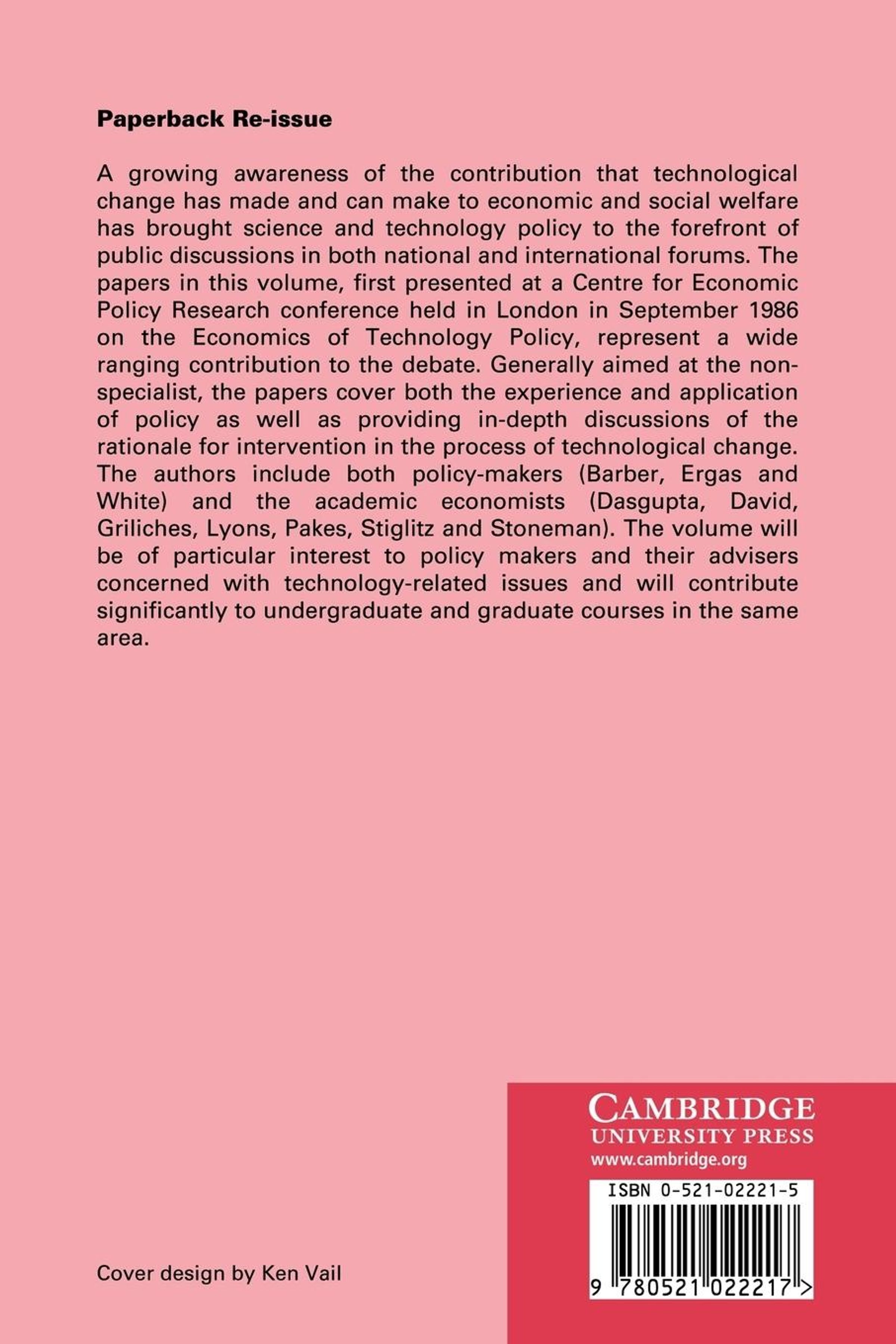 A growing awareness of the contribution that technological change has made and can make to economic and social welfare has brought science and technology policy to the forefront of public discussions in both national and international forums. The papers in this volume, first presented at a Centre for Economic Policy Research conference held in London in September 1986 on the Economics of Technology Policy, represent a wide ranging contribution to the debate. Generally aimed at the non-specialist, the papers cover both the experience and application of policy as well as providing in-depth discussions of the rationale for intervention in the process of technological change. The authors include both policy-makers (Barber, Ergas and White) and the academic economists (Dasgupta, David, Griliches, Lyons, Pakes, Stiglitz and Stoneman). The volume will be of particular interest to policy-makers and their advisers concerned with technology-related issues and will contribute significantly to undergraduate and graduate courses in the same area.