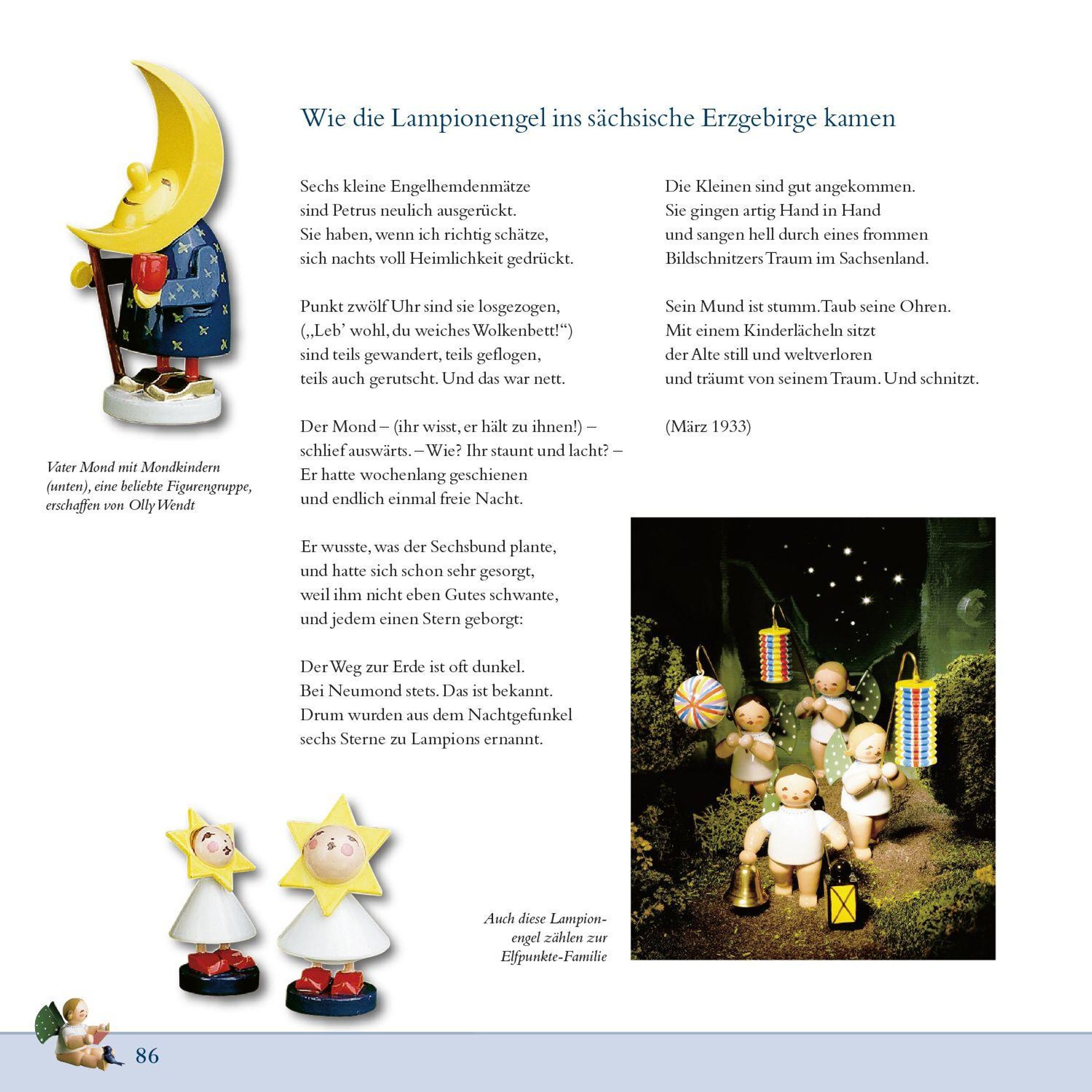 In seinem Buch geht der bekannte Erzgebirgsautor Ehrhardt Heinold diesen Fragen nach, schildert Sachsen als Engelland und führt in die Grünhainichener Werkstätten, wo die Elfpunkte-Engel nach wie vor in liebevoller Handarbeit entstehen. Weitere Themen sind die sonstigen Erzeugnisse des Hauses wie Blumenkinder und Spieldosen und die Geschichte der Manufaktur. Der Autor konnte viele wertvolle Dokumente aus dem Firmenarchiv auswerten und gibt in einem eigenen Kapitel Erlebnisse mit den kleinen Schutzengeln wieder, über die Sammler und Liebhaber in begeisterten Briefen berichtet haben. Das Buch enthält einen kompletten Bilderkatalog der lieferbaren Engel, Stand 2016.