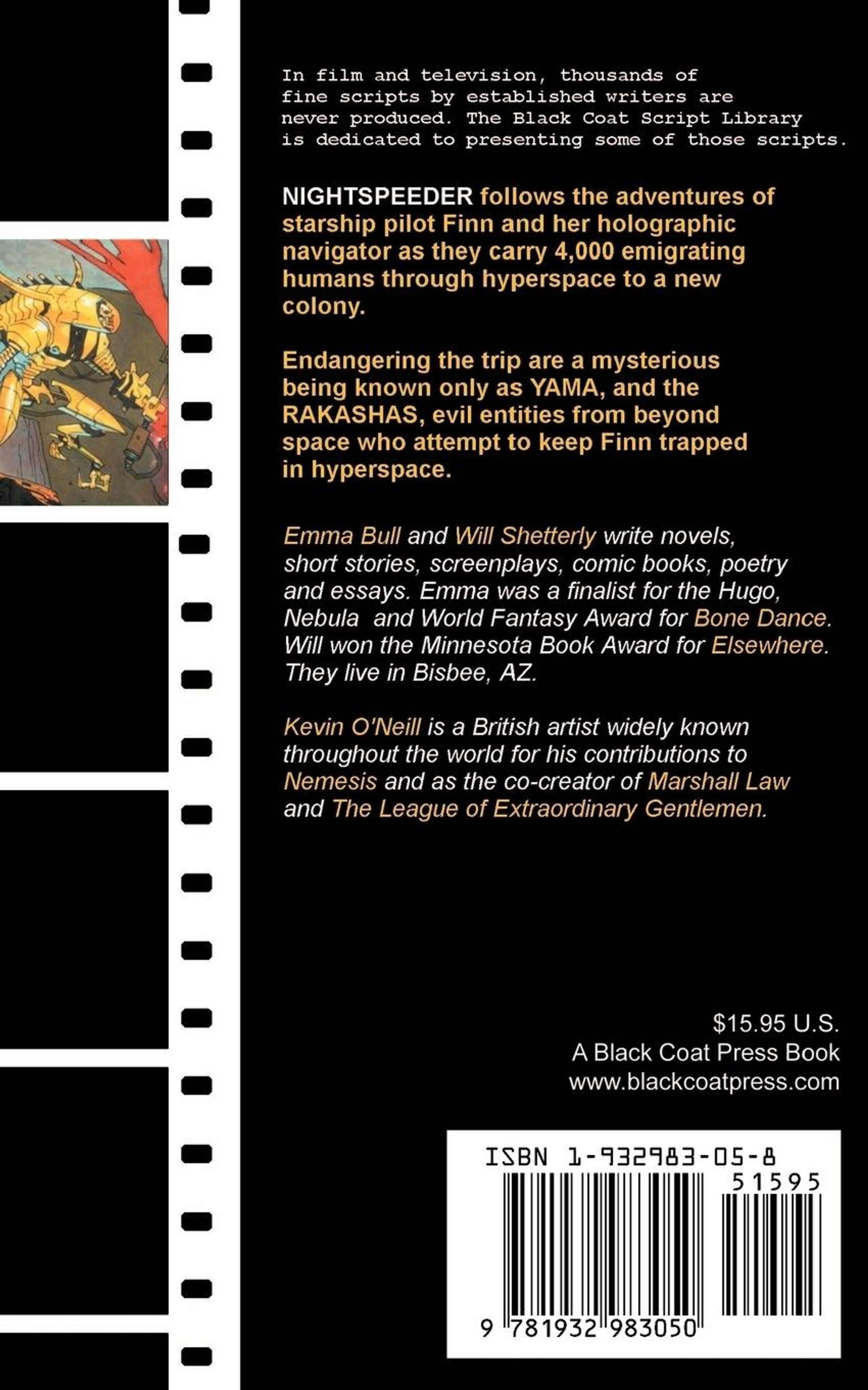 NIGHTSPEEDER follows the adventures of starship pilot Finn and her holographic navigator as they carry 4, 000 emigrating humans through hyperspace to a new colony. Endangering the trip are a mysterious being known only as YAMA, and the RAKASHAS, evil entities from beyond space who attempt to keep Finn trapped in hyperspace.
