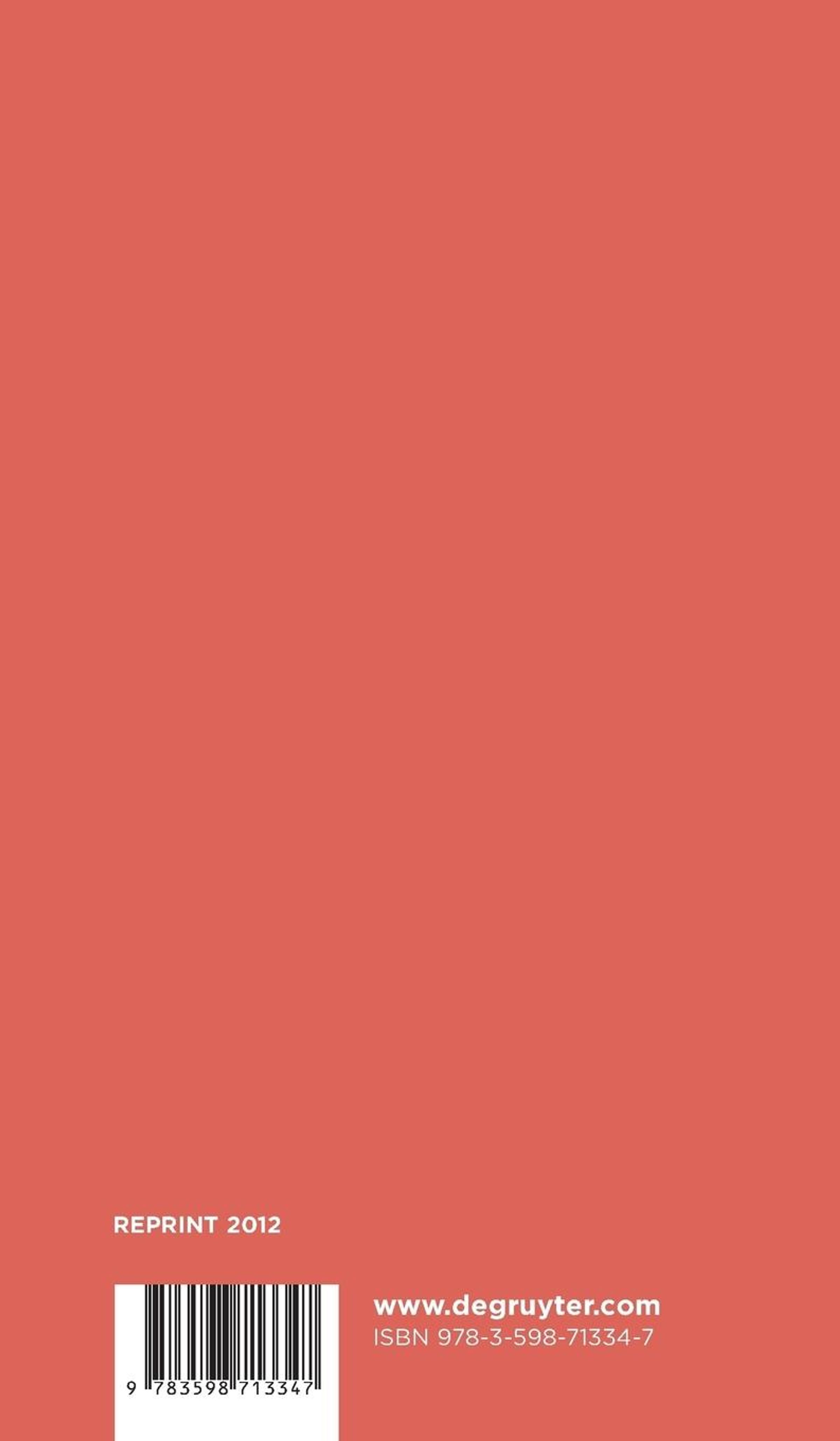 Formerly out-of-print editions are offered as print-on-demand reprints. Furthermore, all new books in the Bibliotheca Teubneriana series are published as eBooks. The older volumes of the series are being successively digitized and made available as eBooks. If you are interested in ordering an out-of-print edition, which hasn't been yet made available as print-on-demand reprint, please contact us: Kerstin. Haensch@degruyter. com