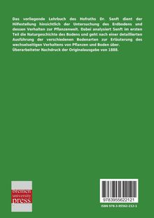 Das vorliegende Lehrbuch des Hofraths Dr. Senft dient der Hilfestellung hinsichtlich der Untersuchung des Erdbodens und dessen Verhalten zur Pflanzenwelt. Dabei analysiert Senft im ersten Teil die Naturgeschichte des Bodens und geht nach einer detaillierten Ausführung der verschiedenen Bodenarten zur Erläuterung des wechselseitigen Verhaltens von Pflanzen und Boden über. Überarbeiteter Nachdruck der Originalausgabe von 1888.