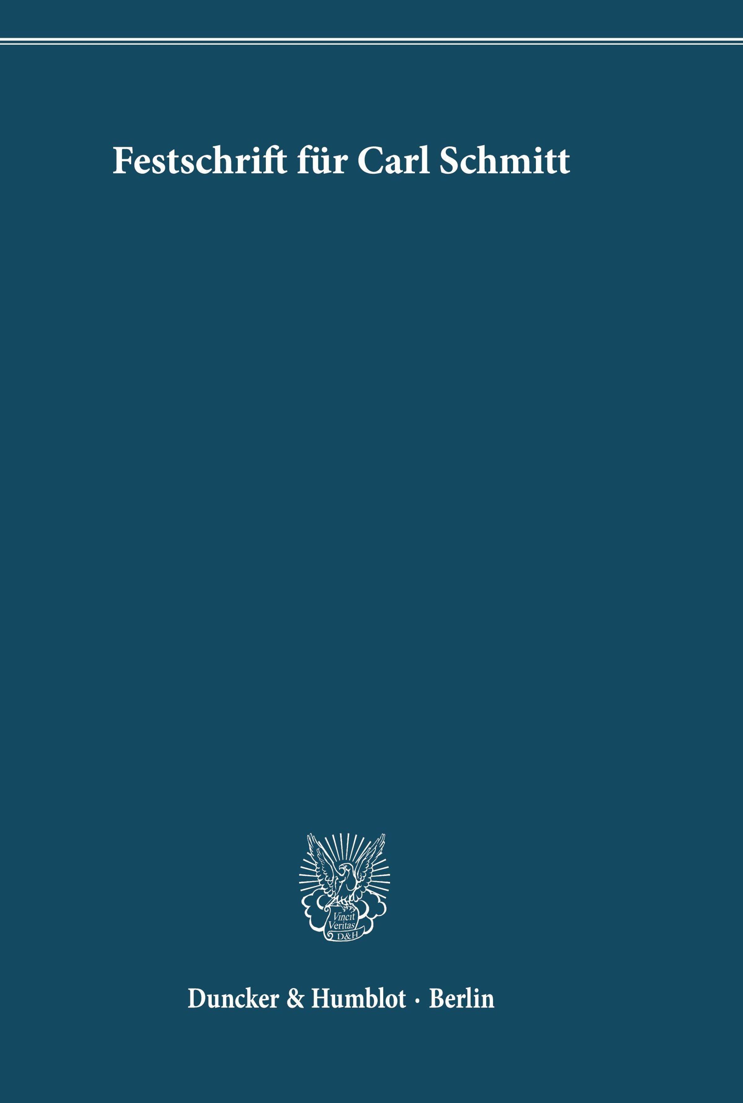 Festschrift für Carl Schmitt zum 70. Geburtstag dargebracht von Freunden und Schülern.