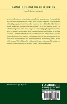 An electrical engineer, university teacher and wide-ranging writer, Fleeming Jenkin (1833-85) filed thirty-five British patents in the course of his career. Edited by Sidney Colvin (1845-1927) and J. A. Ewing (1855-1935) and first published in 1887, this two-volume work brings together a selection of Jenkin's varied and engaging papers. The collection ranges from notes on his voyages as a marine telegraph engineer, to a critical review of Darwin's On the Origin of Species, essays on literature, and thoughts on technical education. A memoir written by Robert Louis Stevenson, his former student, provides biographical context and attests to Jenkin's many interests and talents across the arts and sciences. Volume 1 begins with Stevenson's memoir, incorporating Jenkin's records of his voyages. This is followed by writings on literature and drama. Three pieces on scientific subjects, including the review of Darwin, conclude the volume.