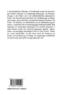 In drei betrieblichen Fallstudien im Einzelhandel wurden die Auswirkungen flexibler Arbeitszeit auf zeitbedingte Belastungen und Beanspruchungen in der Arbeits- und in der außerbetrieblichen Lebenswelt erforscht. Die Untersuchung konzentrierte sich auf Belastungen und Beanspruchungen, die aus der Dauer und Lage der Arbeitszeit resultieren. Die Firmen - ein Kaufhaus, ein Textilkaufhaus und ein Selbstbedienungswarenhaus - praktizieren die im Handel gängigen Arbeitszeitmodelle, feste Arbeitszeit mit roulierendem Freizeitsystem und variabler Arbeitszeit. In jedem Betrieb wurden drei Untersuchungsgruppen gebildet: vollzeit-, teilzeit- und geringfügig beschäftigte Frauen mit ihren Partnern. Weiterhin wurde unterschieden, ob die Frauen durch die Erziehung von Kindern und die Betreuung und Pflege von Angehörigen außerbetrieblich zeitlich stark oder zeitlich weniger gebunden sind.