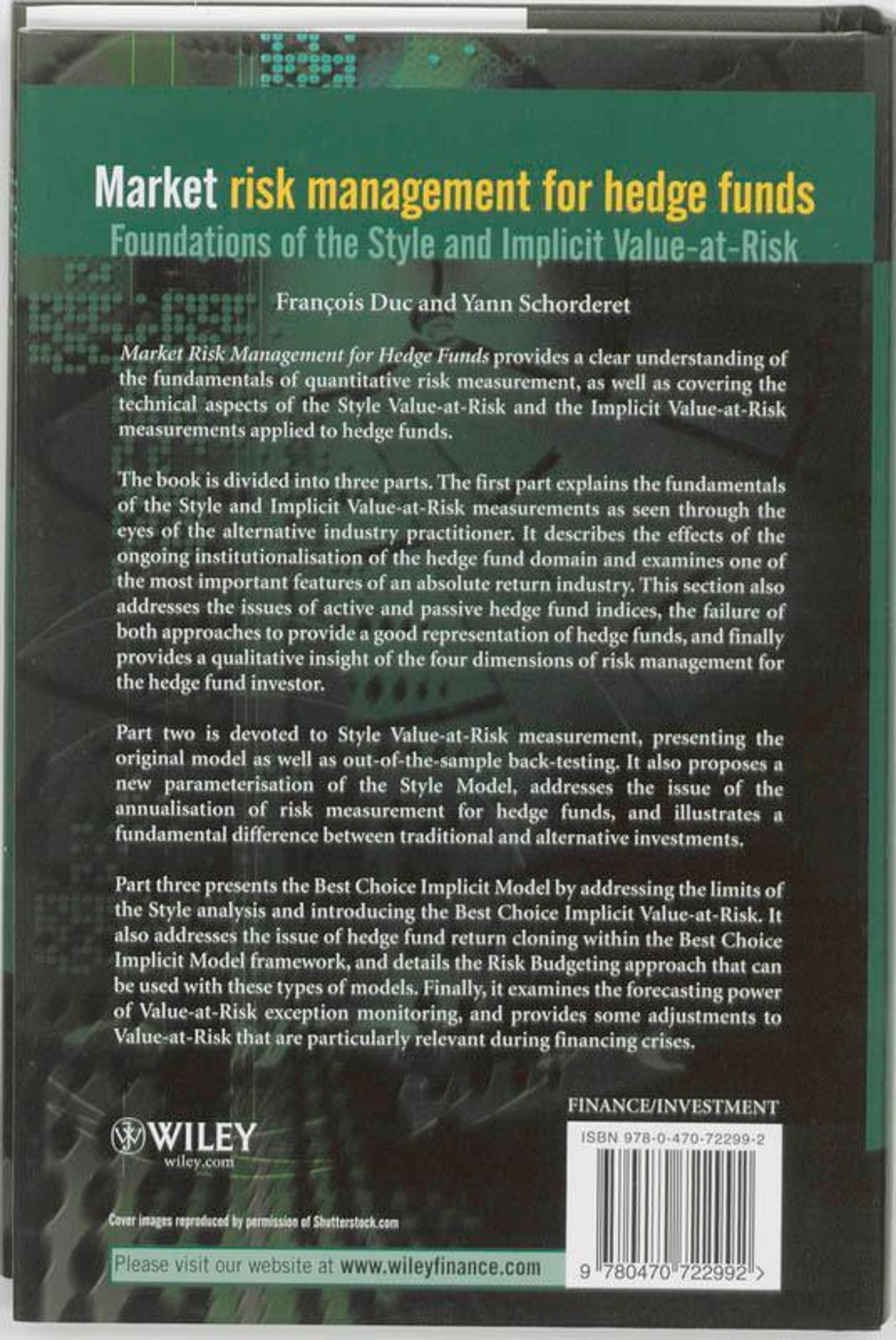 Market Risk Management for Hedge Funds provides a clear understanding of the fundamentals of quantitative risk measurement, as well as covering the technical aspects of the Style Value-at-Risk and the Implicit Value-at-Risk measurements applied to hedge funds.