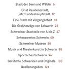 In die Stadt der Seen und Wälder wie Schwerin gern genannt wird, entführt der Stadtführer für die Westentasche. Die einstige Residenzstadt ist heute mit weniger als 100000 Einwohnern die kleinste Hauptstadt eines deutschen Bundeslandes - landeshauptstadt von Mecklenburg-Vorpommern und 2010 achthundertfünfzig Jahre alt. Doch nicht nur im Jubiläumsjahr ist die idyllisch am Schweriner See gelegene Stadt einen Besuch wert. Zahlreiche Sehenswürdigkeiten und eindrucksvolle Zeitzeugen wie die historische Schelfstadt mit ihren Fachwerkbauten, der gotische Backsteindom, das Staatliche Museum Schwerin oder die Burginsel mit dem Märchenschloss locken zur Besichtigung. Ev und Frank Löser zeigen in ihrem Städtebändchen die vielfältigen Facetten einer jung gebliebenen, entwicklungsfreudigen Stadt, die Naturfreunden, Neugierigen und Kulturinteressierten gleichermapen reizvolle Entdeckungen bietet