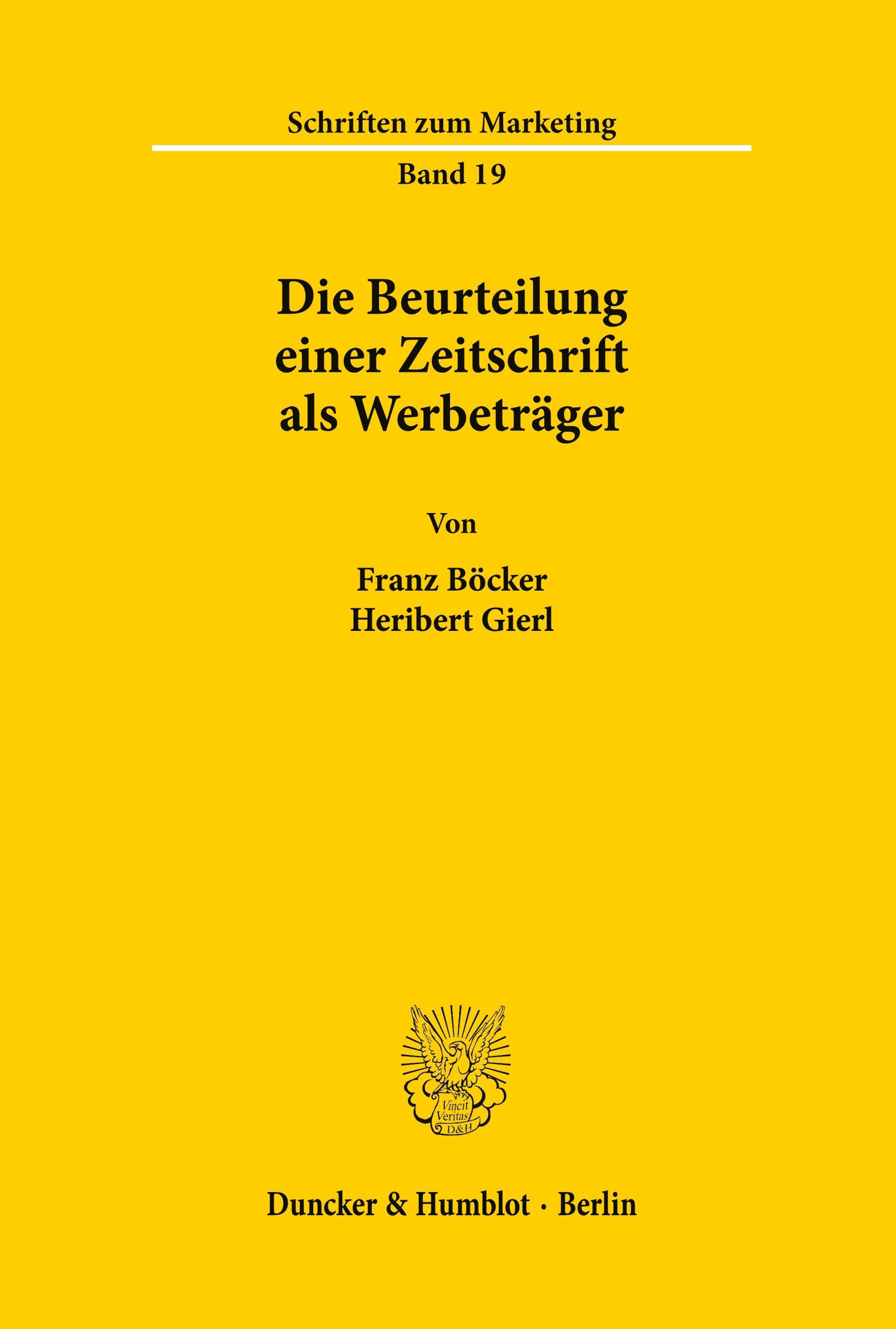 Franz Böcker: Die Beurteilung einer Zeitschrift als Werbeträger., Kartoniert / Broschiert