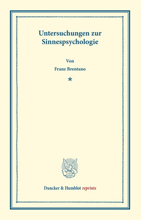 Franz Brentano: Untersuchungen zur Sinnespsychologie, Buch, Buch