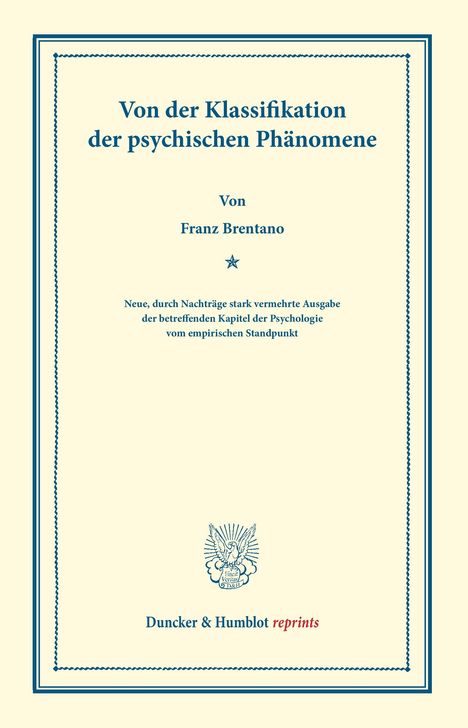 Franz Brentano: Von der Klassifikation der psychischen Phänomene, Kartoniert / Broschiert