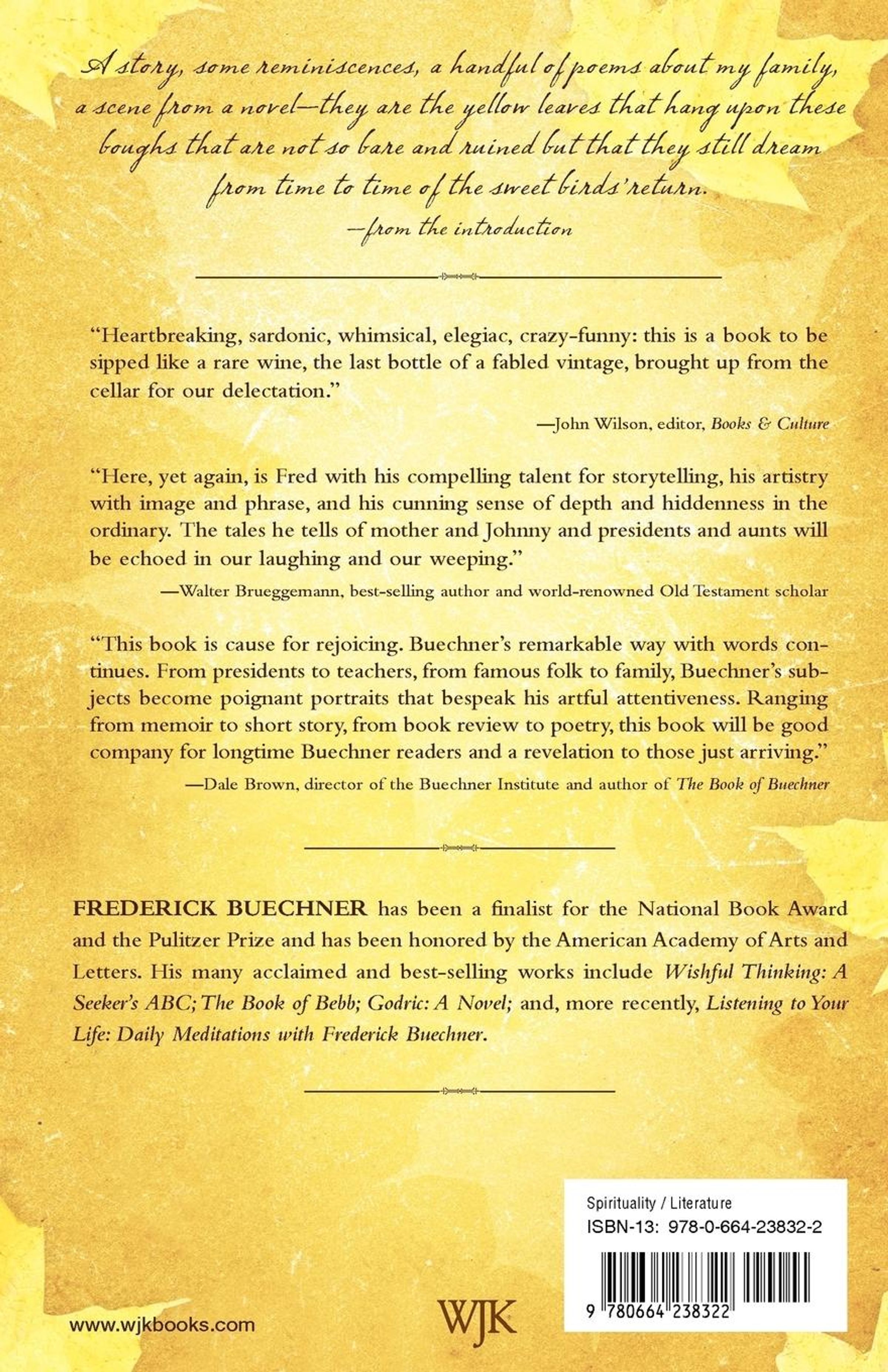 In these original essays, short stories, and poems, the beloved Frederick Buechner reflects on the moments of transcendence in the midst of his daily existence. In a myriad of commonplace activities, he finds the presence of the divine, and he elegantly describes these persons, events, and observations, nimbly transporting readers into these realities. With his masterly crafted prose, Buechner edifies, inspires, and offers a timeless model for approaching our human experience.