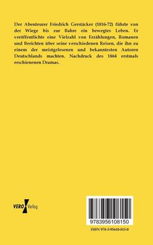 Der Abenteurer Friedrich Gerstäcker (1816-72) führte von der Wiege bis zur Bahre ein bewegtes Leben. Er veröffentlichte eine Vielzahl von Erzählungen, Romanen und Berichten über seine verschiedenen Reisen, die ihn zu einem der meistgelesenen und bekanntesten Autoren Deutschlands machten. Nachdruck des 1864 erstmals erschienenen Dramas.