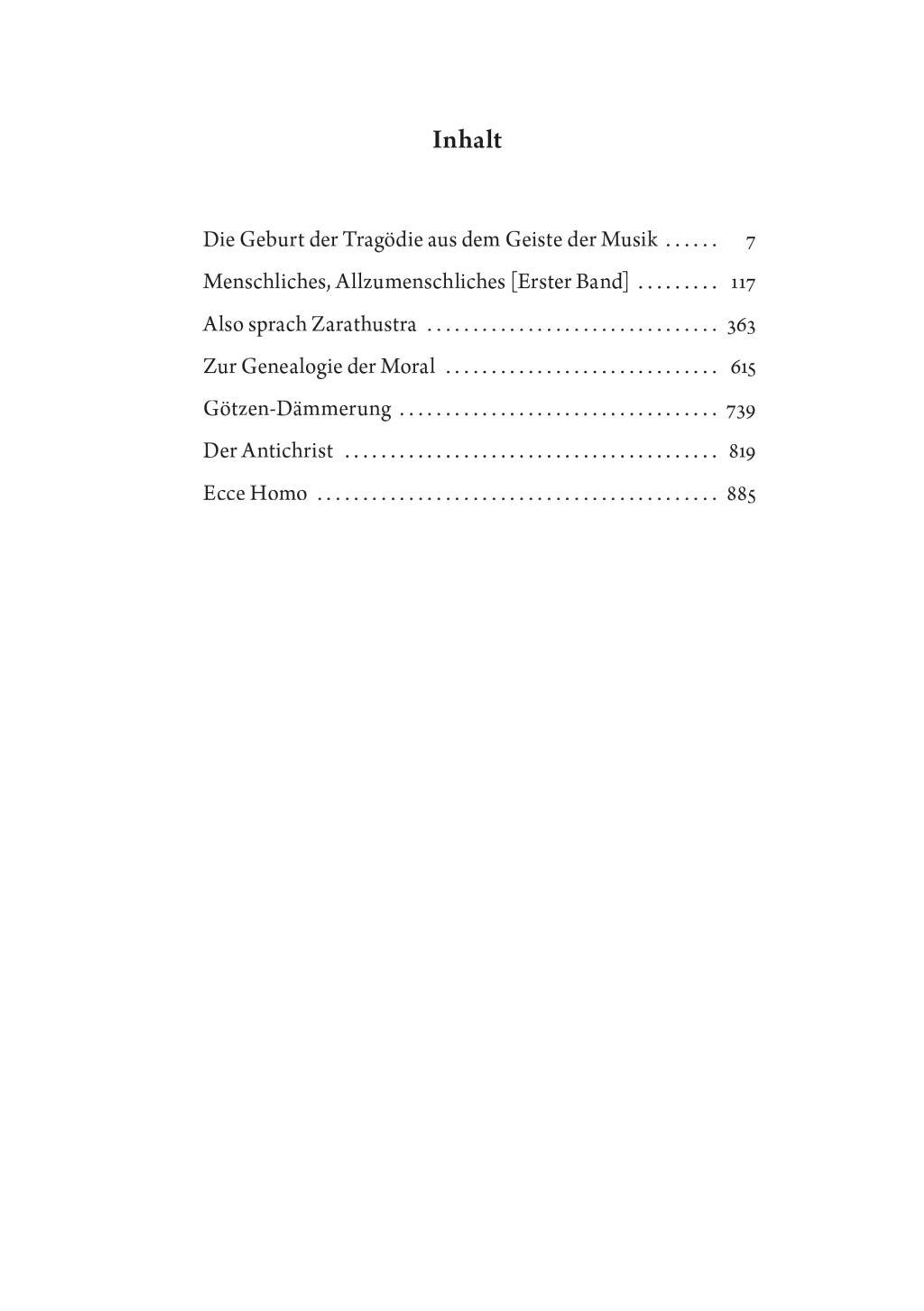 Im Werk Friedrich Nietzsches begegnet uns einer der großen, genialischen Geister der europäischen Philosophie. Sein unerhört breiter Einfluss als wahrhaft 'freier Denker', der nicht davor zurückschreckt, bisweilen sogar sich selbst mit allem Nachdruck und mit guten Gründen zu widersprechen, dauert in Kunst, Literatur und Philosophie bis heute fort. Diese Ausgabe versammelt die Schlüsselwerke seiner frühen, mittleren und späten Schaffensperiode - von 'Die Geburt der Tragödie' über 'Also sprach Zarathustra' bis zu 'Ecce homo'.