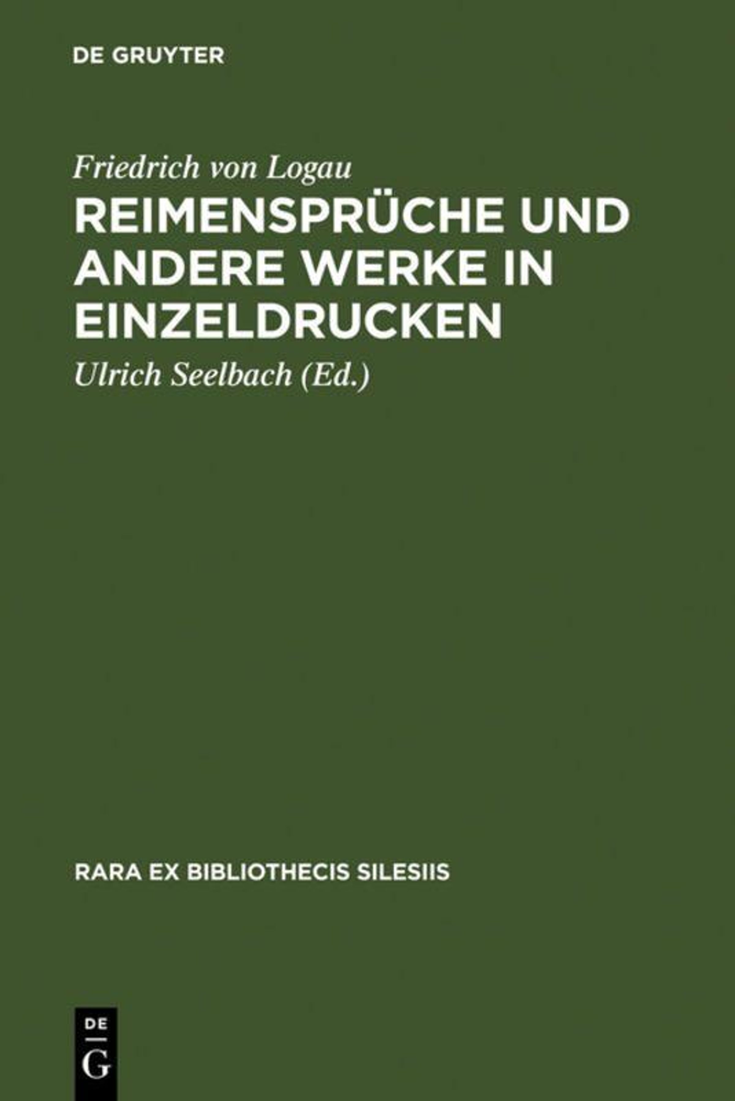 I-VIII -- Texte -- 1. Leichgedicht auf Professor Johann Caspar Odontius (1626) -- 2. Freudengesang (1635) -- 3. Erstes und Andres Hundert Teutscher Reimen-Sprüche (1638) -- 4. Epicedion und Epitaph auf Anna Helena Freiin von Bibran (1642) -- 5. Gott, der du bist ein Freund der Menschenkinder (1644) -- 6. Abdankungsrede auf Emerentiana von Nimptsch (1651) -- 7. Leichgedichte auf Hans von Nimptsch (1651) -- 8. Über die deutschen Gedichte Wencel Scherffers (1652) -- 9. Anna Sophia (1652) -- 10. Leichgedicht auf Daniel Hertwig (1655) -- Anhang: Wencel Scherffers Thränen-Getichte über den frühzeitigen und traurigen Fall Friedrichs von Logau -- Nachwort des Herausgebers -- Biographie -- Erläuterungen zu den Texten -- Bibliographie -- Inhalt -- Danksagung