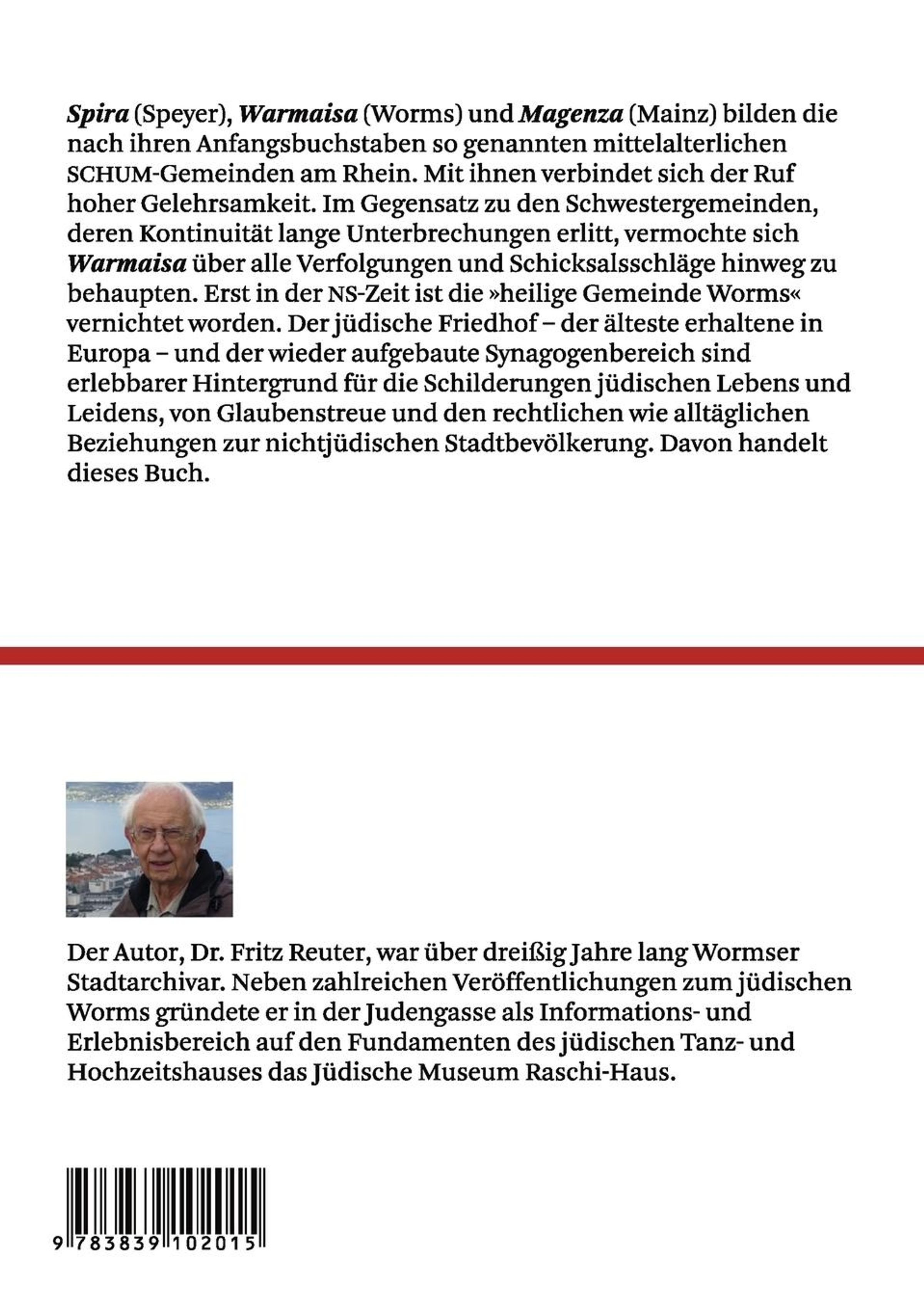 Spira (Speyer), Warmaisa (Worms) und Maguntia (Mainz) bilden die nach ihren Anfangsbuchstaben so genannten mittelalterlichen SCHUM-Gemeinden am Rhein. Mit ihnen verbindet sich der Ruf hoher Gelehrsamkeit. Im Gegensatz zu den Schwestergemeinden, deren Kontinuität lange Unterbrechungen erlitt, vermochte sich Warmaisa über alle Verfolgungen und Schicksalsschläge hinweg zu behaupten. Erst in der NS-Zeit ist die >>heilige Gemeinde Worms<< vernichtet worden. Der jüdische Friedhof der älteste erhaltene in Europa und der wieder aufgebaute Synagogenbereich sind erlebbarer Hintergrund für die Schilderungen jüdischen Lebens und Leidens, von Glaubenstreue und den rechtlichen wie alltäglichen Beziehungen zur nichtjüdischen Stadtbevölkerung. Davon handelt dieses Buch.