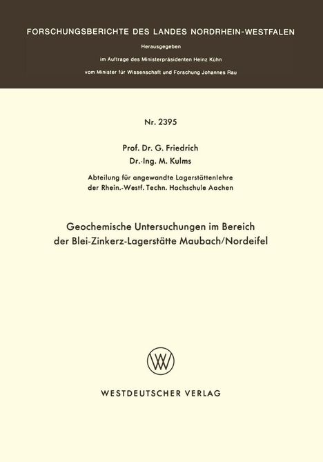 G. Friedrich: Geochemische Untersuchungen im Bereich der Blei-Zinkerz-Lagerstätte Maubach / Nordeifel, Kartoniert / Broschiert
