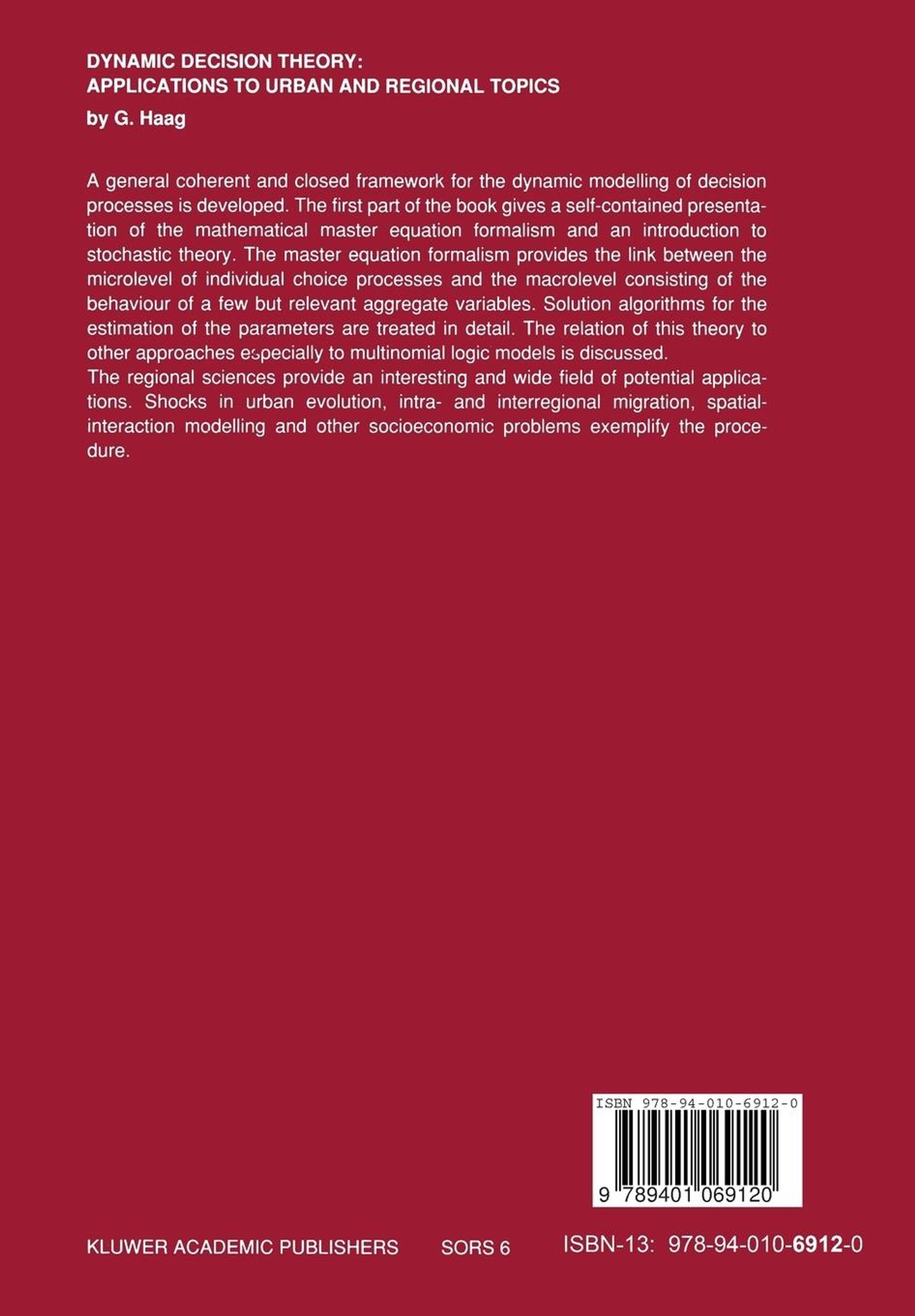- Introduction.- 2. A Dynamic Theory of Decision Processes.- 2.1 The Panel Data-Based Discrete Choice Approach.- 2.2 The Master Equation View in Dynamic Choice Processes.- 2.3 The Decision Process.- 2.4 The Equations of Motion.- 2.5 Parameter Estimation.- 2.6 Selection Criteria for the Examples.- 3. Shocks in Urban Evolution.- 3.1 Introduction.- 3.2 A Stochastic Model on Shocks in Urban Evolution.- 4. Intra - Urban Migration.- 4.1 Introduction.- 4.2 A Stochastic Model on Intra-Urban Dynamics.- 5. Inter-Regional Migration.- 5.1 Introduction.- 5.2 The Stochastic Migration Model.- 5.3 Comparative Analysis of Inter-Regional Migration.- 6. Chaotic Evolution of Migratory Systems.- 6.1 Introduction.- 6.2 The Migratory Master Equation and Mean Value Equations for Interacting Populations.- 6.3 Chaotic Behaviour of Migratory Trajectories.- 6.4 Conclusion.- 7. Spatial Interaction Models and their Micro-Foundation.- 7.1 Introduction to Spatial Urban Theory.- 7.2 A Service System as the Basis of the Model.- 7.3 A Master Equation Approach.- 7.4 The Quasi-Deterministic Equations to the Dynamic Service Sector Model.- 7.5 The Stationary Solution of the Service Sector Model.- 7.6 Dynamic Simulations and their Interpretation.- 7.7 Concluding Comments.- 8. Further Applications and Extensions.- 8.1 Knowledge, Innovation, Productivity.- 8.2 Economic Cycles.- 8.3 Housing and Labour Market.- 8.4 Concluding Remarks.- 9. Appendix: The Master Equation.- 9.1 Deterministic and Probabilistic Description of Systems.- 9.2 Some General Concepts of Probability Theory.- 9.3 The Derivation of the Master Equation.- 9.4 The Stationary Solution of the Master Equation for Detailed Balance.- 9.5 The Stationary Solution of the Master Equation of Chapter 4.- 9.6 The Stationary Solution of the Master Equationof Chapter 5.- 9.7 The Embedding of Random Utility Theory.- 9.8 The Construction of Configurational Transition Rates via Panel Data.- References.