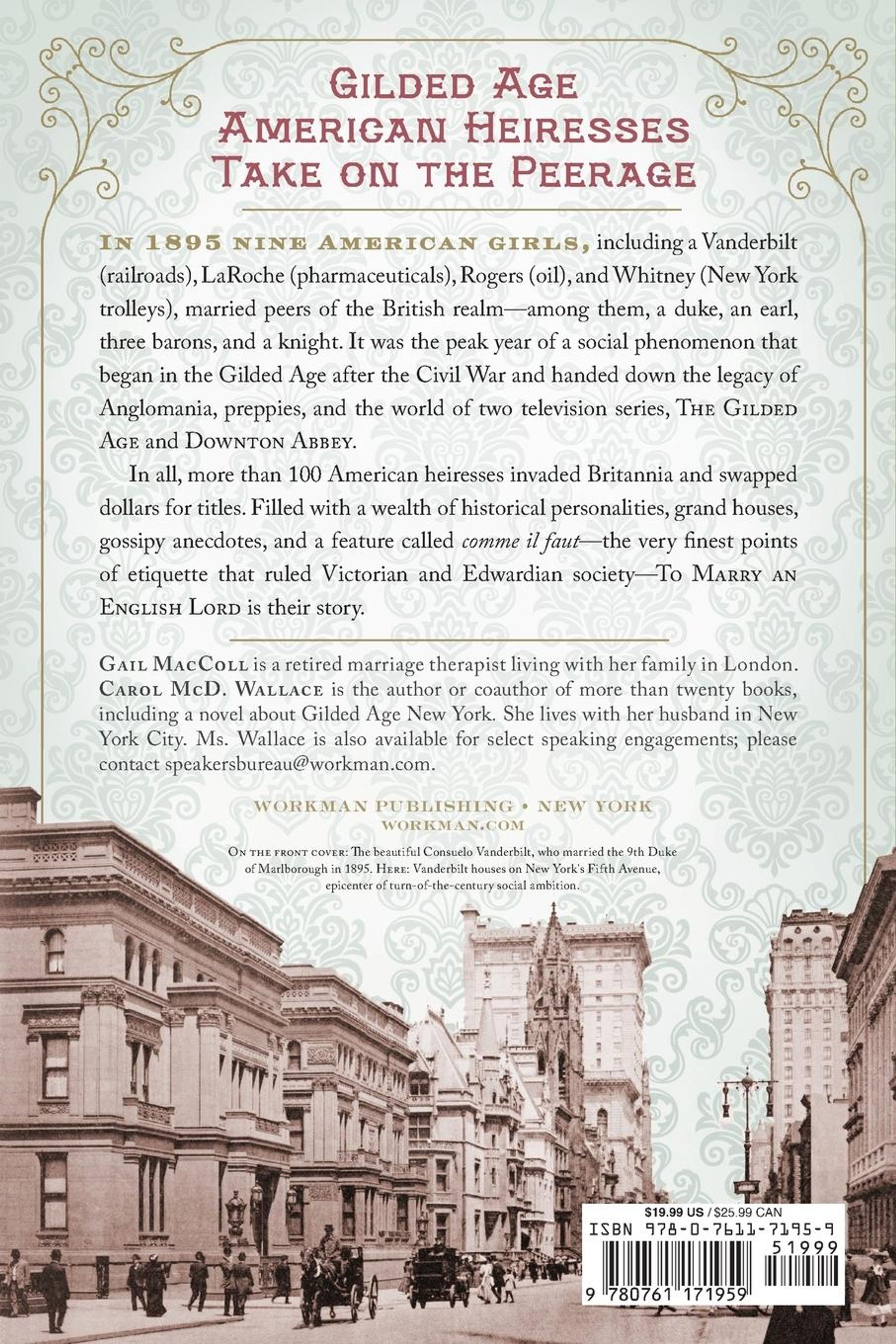In 1895 nine American girls, including a Vanderbilt (railroads), LaRoche (pharmaceuticals), Rogers (oil), and Whitney (New York trolleys), married peers of the British realm---among them, a duke, an earl, three barons, and a knight. It was the peak year of a social phenomenon that began in the Gilded Age after the Civil War, and handed down the legacy of Anglomania, preppies, and the world of two television series, Downton Abbey and The Gilded Age.