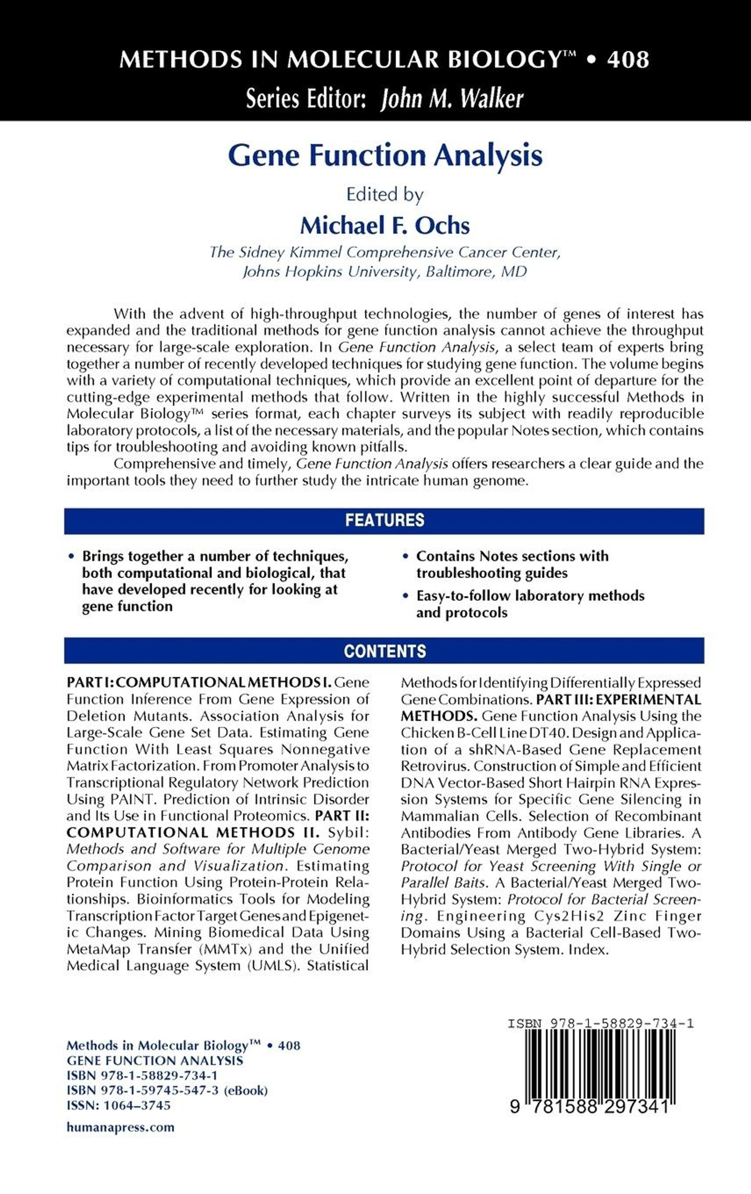 Titel: "Gene Function Analysis". Herausgeber: Michael F. Ochs. Illustration zeigt Diagramm zur Genanalyse., Buch
