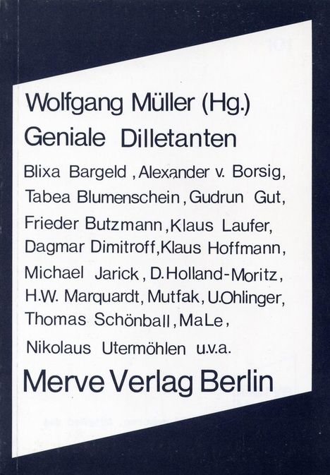 'Da machen die >genialen Dilletanten< weiter, nur daß sie eben nicht nur Musiker sind, sondern auch Philosophen wie Wolfgang Müller, Literaten wie Frieder Butzmann, Lyrikerinnen wie Gudrun Gut von >Malaria< und Malerinnen wie Tabea Blumenschein, die dem Bändchen einige sehr schöne Zeichnungen beigefügt.'
