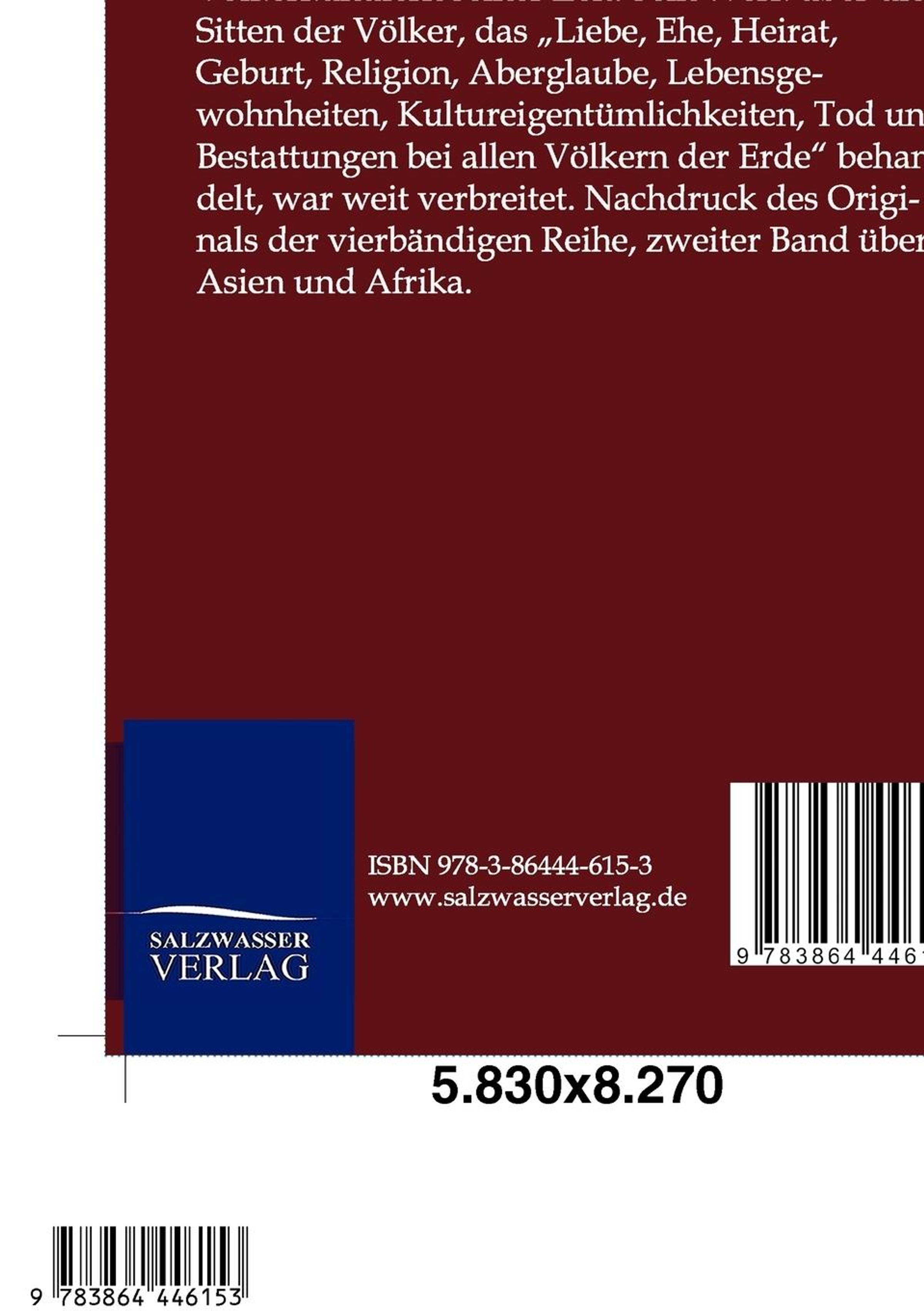 Georg Hermann Theodor Buschan (1863-1942) war ein deutscher Mediziner, Ethnologe und Ethnograph. Er gehörte zu den bedeutendsten Völkerkundlern seiner Zeit. Sein Werk über die Sitten der Völker, das "Liebe, Ehe, Heirat, Geburt, Religion, Aberglaube, Lebensgewohnheiten, Kultureigentümlichkeiten, Tod und Bestattungen bei allen Völkern der Erde" behandelt, war weit verbreitet. Nachdruck des Originals der vierbändigen Reihe, zweiter Band über Asien und Afrika.