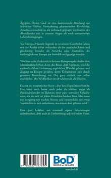 Das Buch beschreibt eine Nilkreuzfahrt, die nach einem Zwischenstopp in Kairo nach Assuan führt, von da bis zum südlichsten Punkt Ägyptens und anschließend per Schiff und Bus wieder bis Kairo. Die Kapitel entsprechen den Reiseetappen. Es ist kein Tagebuch, sondern eine essayistische mit erhellenden Rückblenden versehene Aufarbeitung der Geschehnisse und Besichtigungen während der Reise. Wie man mit Touristen umgeht, Ordnungsmacht und Terrorismus, die Besonderheiten altägyptischer Kultur, ihre verlogene Vermarktung und die auch heute oft noch vorsintflutlich anmutenden Lebensbedingungen, vor allem auf dem Lande, das ist hier beschrieben. Dass die Reise zusätzlich durch ein Erdbeben überschattet wurde, ist dabei nur Zugabe. Eine gute Lektüre, um seine eigenen Erinnerungen wieder aufzufrischen, aber auch als Vorbereitung einer solchen Reise.