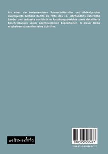 Als einer der bedeutendsten Reiseschriftsteller und Afrikaforscher durchquerte Gerhard Rohlfs ab Mitte des 19. Jahrhunderts zahlreiche Länder und verfasste ausführliche Forschungsberichte sowie detaillierte Beschreibungen seiner abenteuerlichen Expeditionen. In dieser Reihe erscheinen sukzessive seine Schriften.