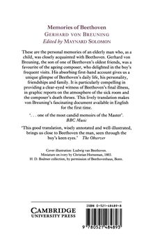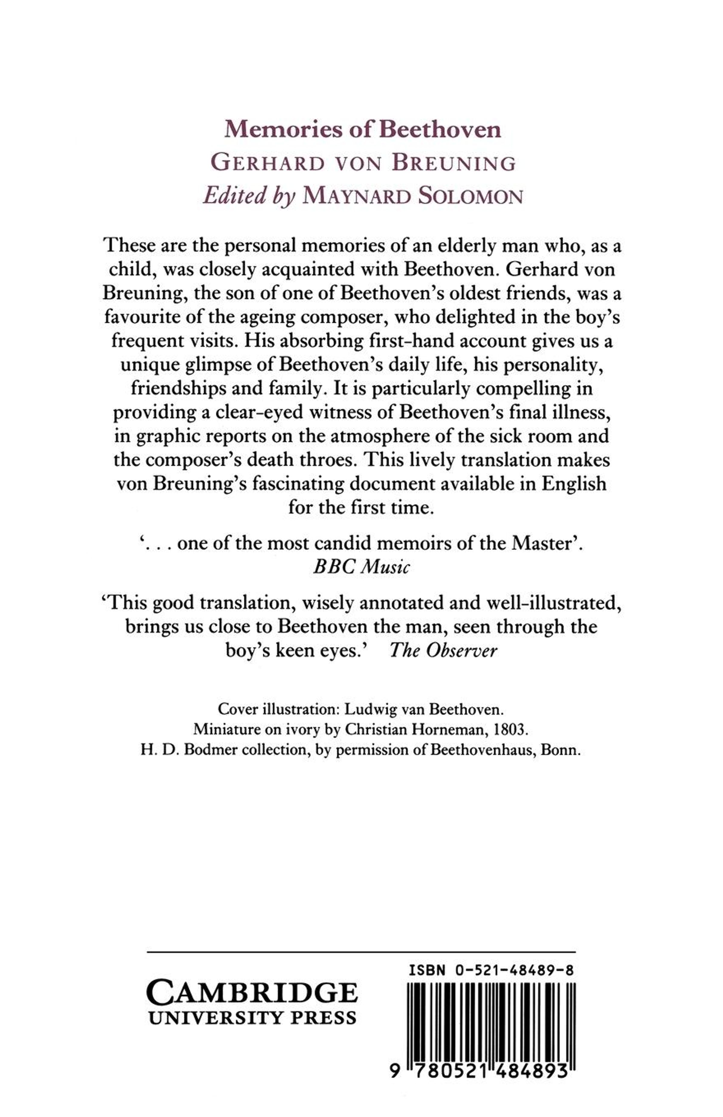 These are the personal memories of an elderly man who, as a child, was closely acquainted with Beethoven. Gerhard von Breuning, the son of one of Beethoven's oldest friends, was a favourite of the ageing composer, who delighted in the boy's frequent visits. His absorbing first-hand account gives us a unique glimpse of Beethoven's daily life, his personality, friendships and family.