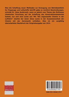 Was die Schaffung neuer Methoden zur Erzeugung von Betriebsmitteln für Flugzeuge und Luftschiffe betrifft gäbe es reichlich Beschreibungen, schreibt Dr. Géza Austerweil, wenn es jedoch zum Thema des Einflusses chemischer Forschung auf die Schaffung des Konstruktionsmaterials kommt, tue sich eine Lücke auf. Mit \"Die angewandte Chemie in der Luftfahrt\" möchte der Autor diese Lücke in der Zusammenarbeit der Chemie mit der Aeronautik schließen. Dies ist ein sorgfältig überarbeiteter Nachdruck der Originalausgabe von 1914.