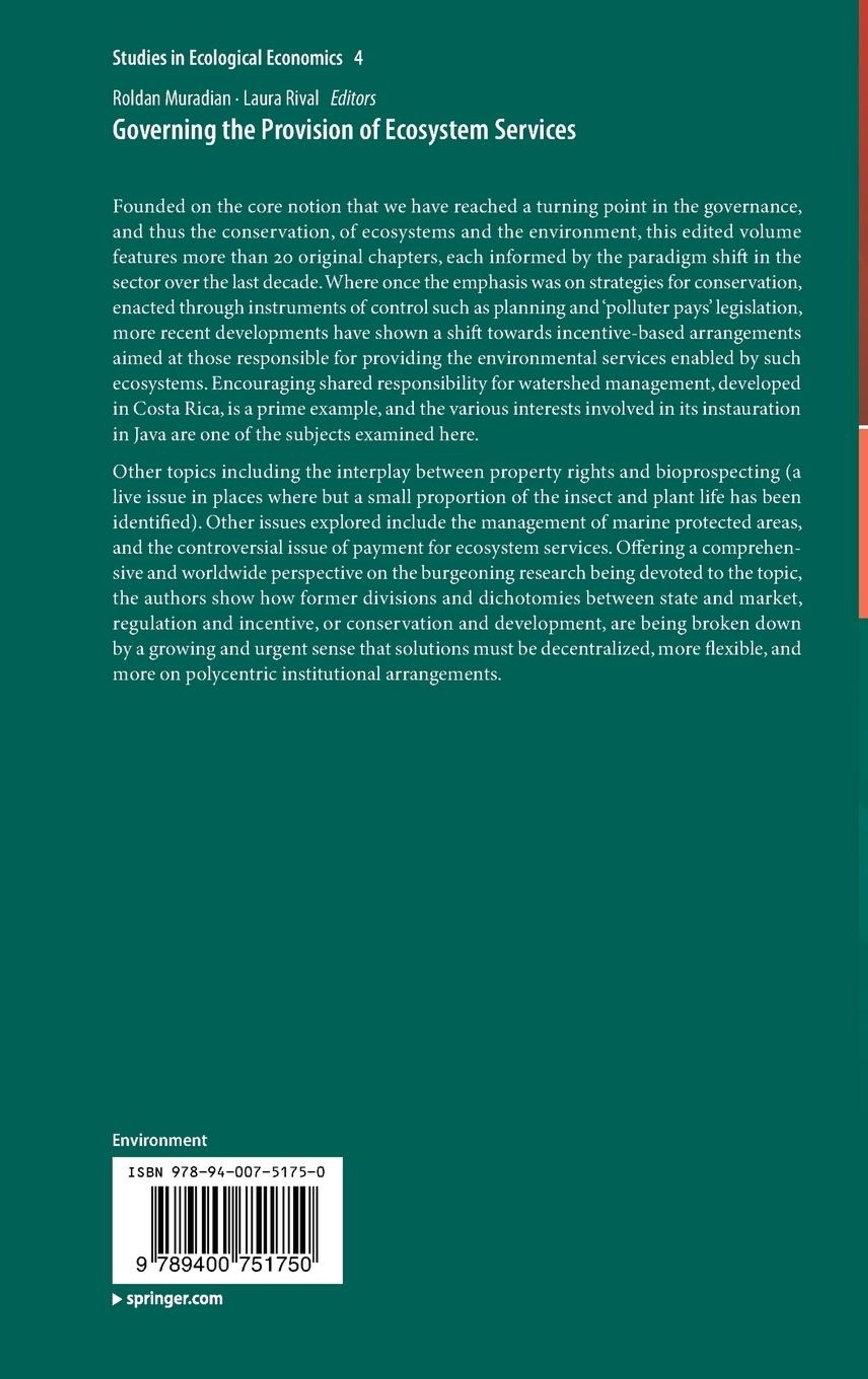 Governing the Provision of Ecosystem Services, Buch, Buch