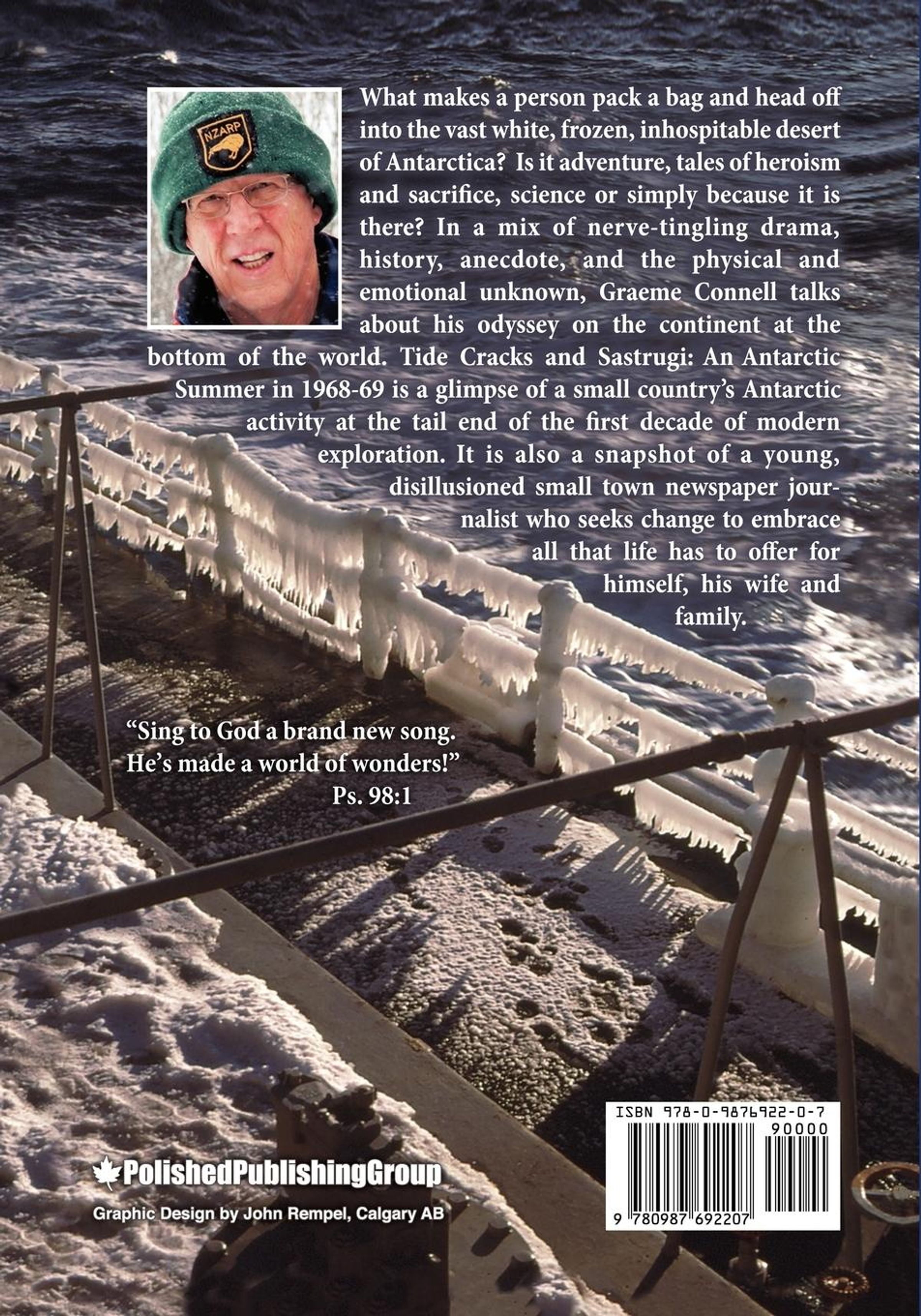 What makes a person pack a bag and head off into the vast white, frozen, inhospitable desert of Antarctica? Is it adventure, tales of heroism and sacrifice, science or simply because it is there? In a mix of nerve-tingling drama, history, anecdote, and the physical and emotional unknown, Graeme Connell talks about his odyssey on the continent at the bottom of the world. Tide Cracks and Sastrugi: An Antarctic Summer in 1968-69 is a glimpse of a small country's Antarctic activity at the tail end of the first decade of modern exploration. It is also a snapshot of a young, disillusioned small town newspaper journalist who seeks change to embrace all that life has to offer for himself, his wife and family.