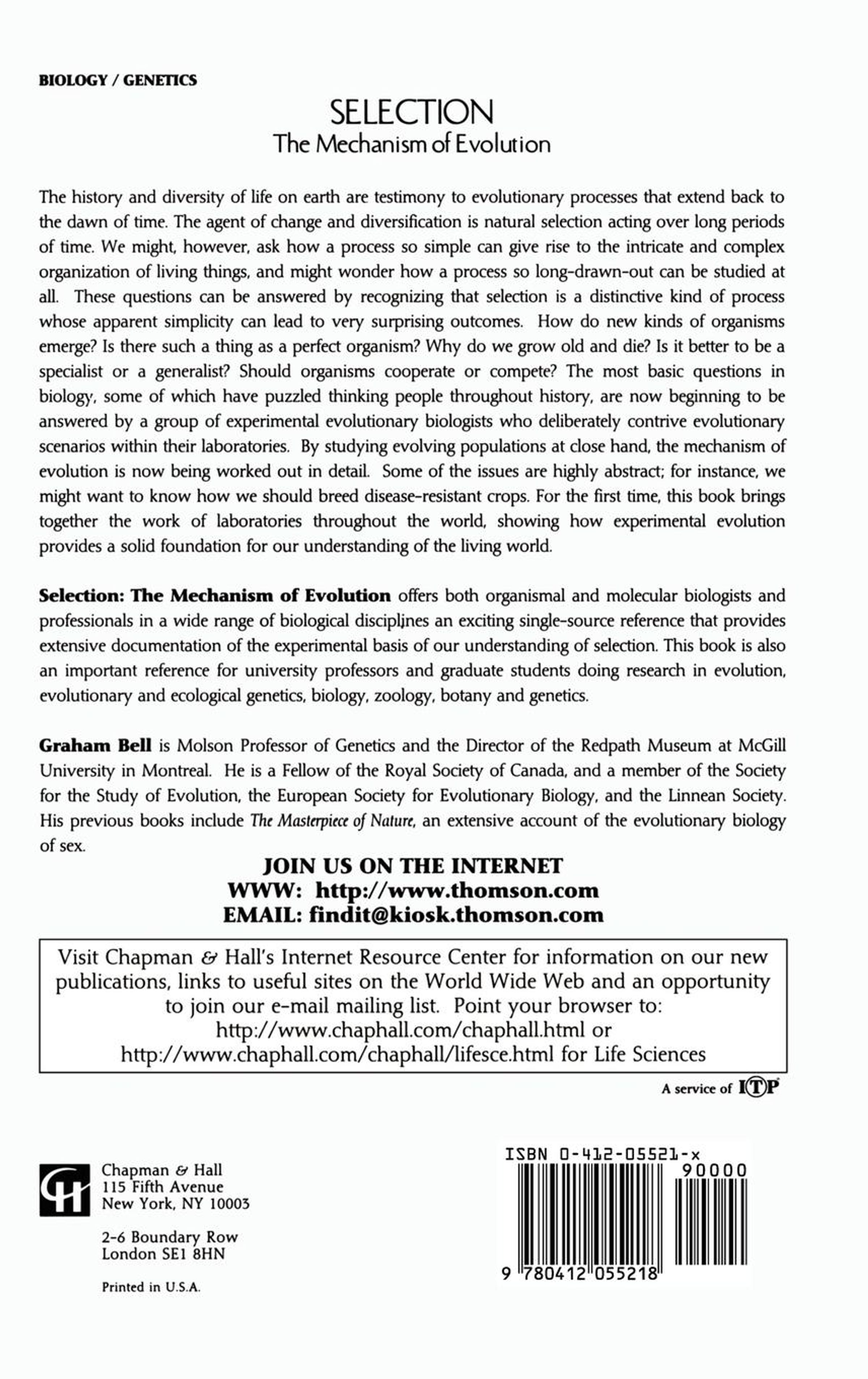 Thisbookhasbeenwritten tomake a pointand tofulfill a need. Thepoint is that the importance and the distinctiveness of the process of selection have been undervalued by most biologists. There is, consequently, the need for a book that describes the principles of selection in a simple but reasonably comprehensive way. Selection Is a Distinct Kind ofProcess Although we are now well into the second century of Darwinism, the theorythatDarwinand Wallaceannouncedin 1858hasnotyetmademuch progress beyond a small coterie of professional biologists. The reason is thatit isjarringlyunfamiliar toournormalexperienceofhow things come to be. Few ofus would be able to design a light bulb or a lathe, still fewer the computerand itsattendant softwarewithwhich this sentence is being written. But we all have a clear idea of what is meant by "design", and we readily, too readily, transfer this notion to the natural world. A light bulb or a lathe are prefigured in the mind, and constructed according to a plan. It is entirely reasonable to assume that beetles and daisies must be constructed after the same fashion, especially because they are much morecomplicatedthananythingthathumaningenuityhassofarmanaged to devise. There is, however, a second route to complex organization, throughtheselectionofrandomvariantsthatpropagatenearlyexactcopies ofthemselves. Itisofverylittleconsequenceinourdailylives, becauseifis somuchmorelaboriousandexpensivethandeliberatedesign. However, it isanotherwayofconstructingthings. Indeed, sofarasIknow, itistheonly other way of constructing things that we have ever been able to imagine.