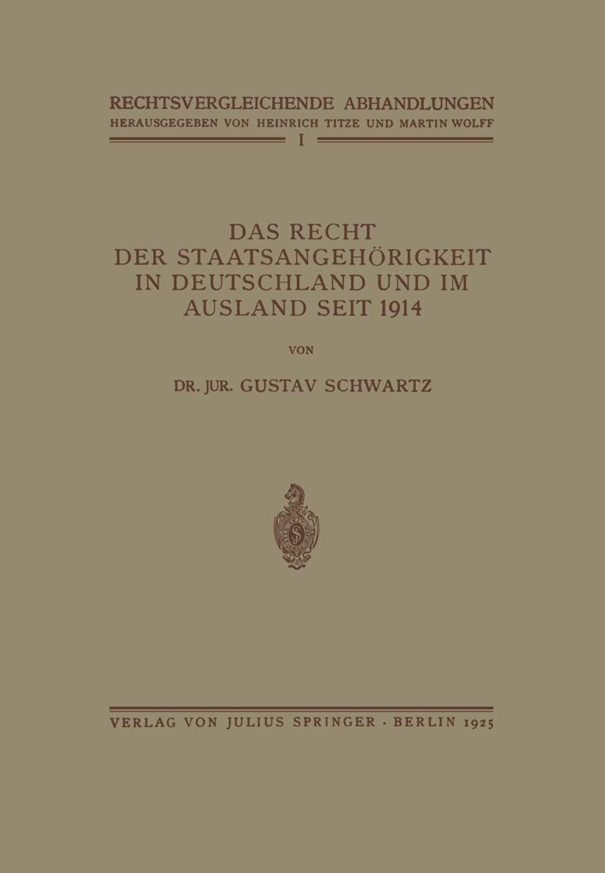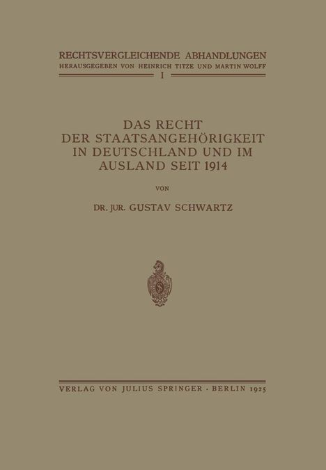 Der Artikel Gustav Schwartz: Das Recht der Staatsangehörigkeit in Deutschland und im Ausland Seit 1914 wurde in den Warenkorb gelegt.