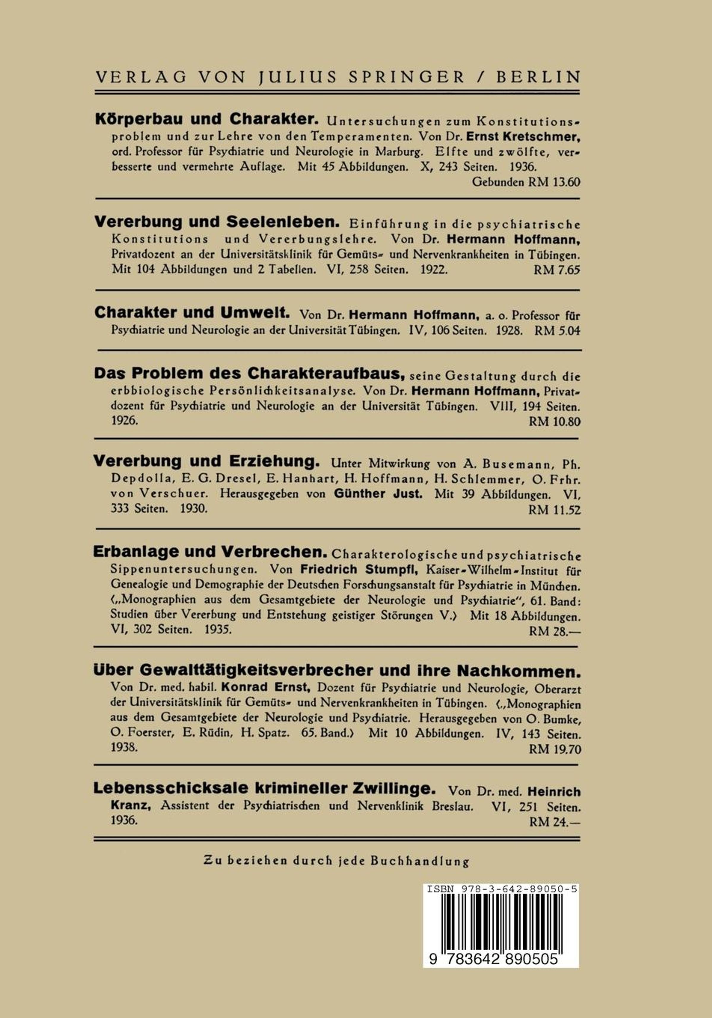 Erbbiologie und Erbpathologie Nervöser und Psychischer ¿ustände und Funktionen
