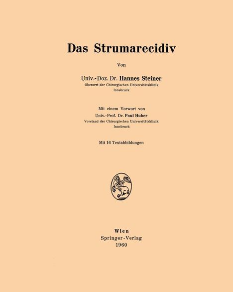 Literaturangaben über die Recidivhä ufigkeit.- Die Indikationsstellung.- Die Voruntersuchungen.- Die Indikationen.- Die Operationstechnik.- A. Die Anaesthesie.- B. Der Hautschnitt.- C. Das Freilegen des Recidivs.- Die postoperativen Komplikationen.- A. Todesfä lle.- B. Die Recurrensschä digung.- C. Die postoperative Tetanie.- D. Sonstige Komplikationen.- Altersverteilung der Recidive.- Erstes oder einmaliges Recidiv.- II und III. Recidiv.- Pathophysiologie.- Art der Recidive.- Histologie.- Die Recidivverhütung.- A. Operative Maßnahmen.- B. Medikamentöse Prophylaxe.
