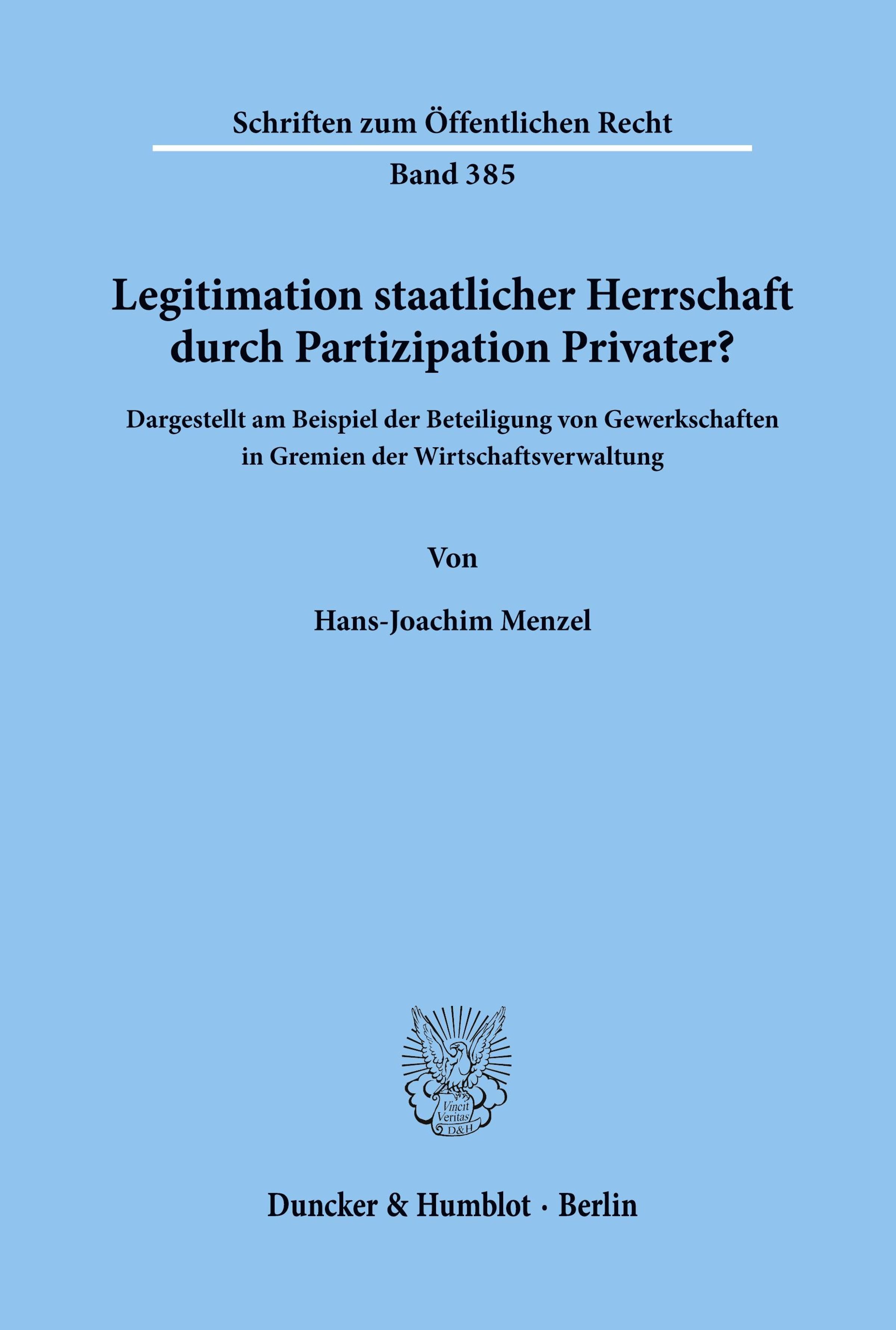 Hans-Joachim Menzel: Legitimation staatlicher Herrschaft durch Partizipation Privater?, Kartoniert / Broschiert