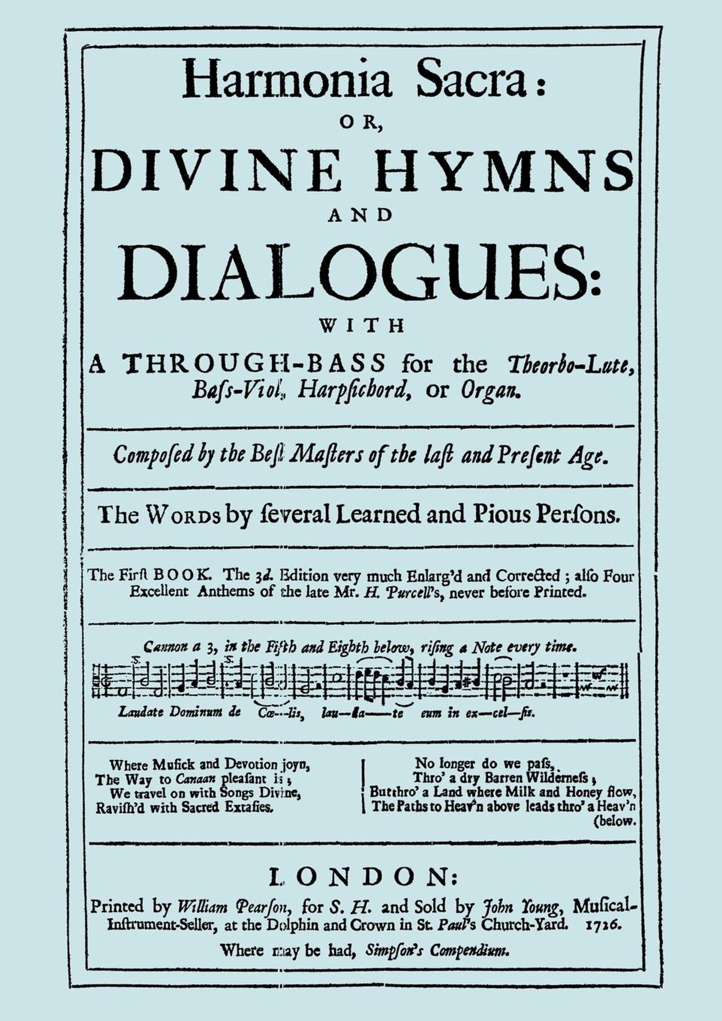 Harmonia Sacra or Divine Hymns and Dialogues. with a Through-Bass for the Theobro-Lute, Bass-Viol, Harpsichord or Organ. The First Book. [Facsimile of the 1726 edition, printed by William Pearson]