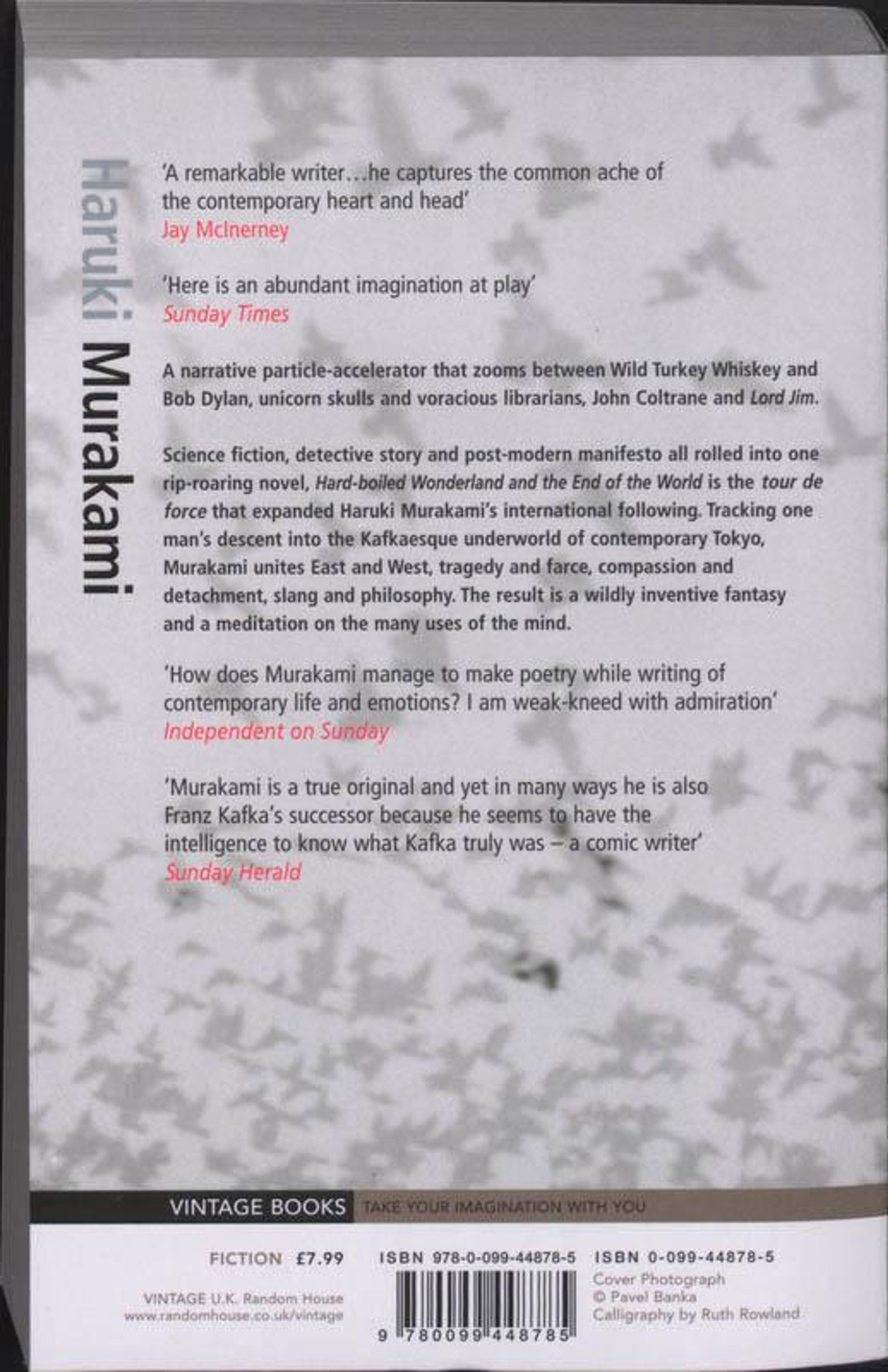 A narrative particle accelerator that zooms between Wild Turkey Whiskey and Bob Dylan, unicorn skulls and voracious librarians, John Coltrane and Lord Jim. Science fiction, detective story and post-modern manifesto all rolled into one rip-roaring novel, Hard-boiled Wonderland and the End of the World is the tour de force that expanded Haruki Murakami's international following. Tracking one man's descent into the Kafkaesque underworld of contemporary Tokyo, Murakami unites East and West, tragedy and farce, compassion and detachment, slang and philosophy.
