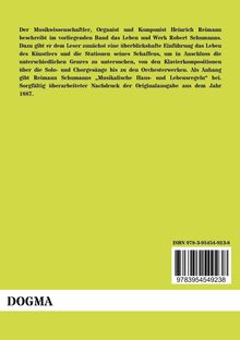 Der Musikwissenschaftler, Organist und Komponist Heinrich Reimann beschreibt im vorliegenden Band das Leben und Werk Robert Schumanns. Dazu gibt er dem Leser zunächst eine überblickshafte Einführung das Leben des Künstlers und die Stationen seines Schaffens, um in Anschluss die unterschiedlichen Genres zu untersuchen, von den Klavierkompositionen über die Solo- und Chorgesänge bis zu den Orchesterwerken. Als Anhang gibt Reimann Schumanns Musikalische Haus- und Lebensregeln bei. Sorgfältig überarbeiteter Nachdruck der Originalausgabe aus dem Jahr 1887.