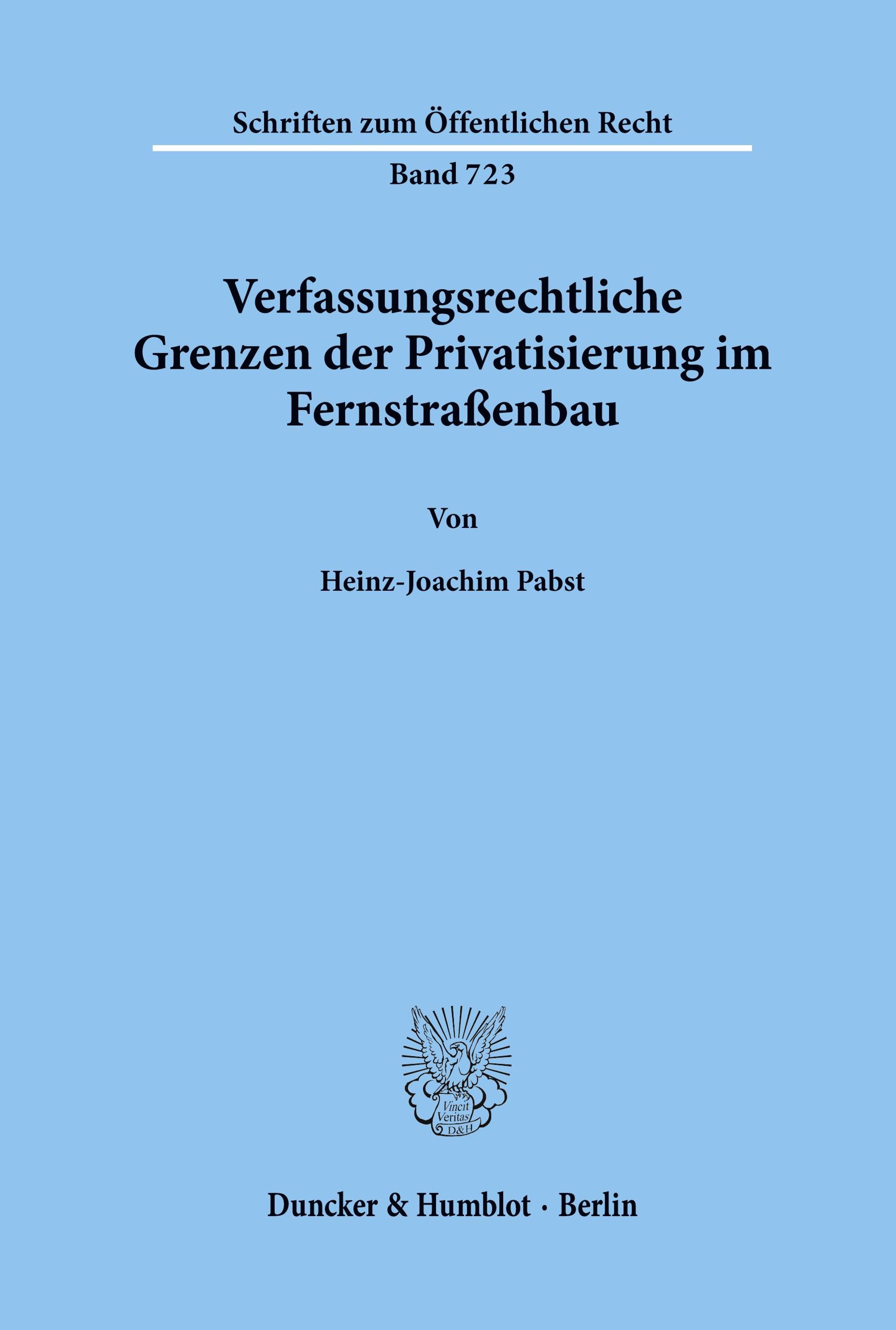 Heinz-Joachim Pabst: Verfassungsrechtliche Grenzen der Privatisierung im Fernstraßenbau., Kartoniert / Broschiert