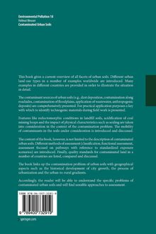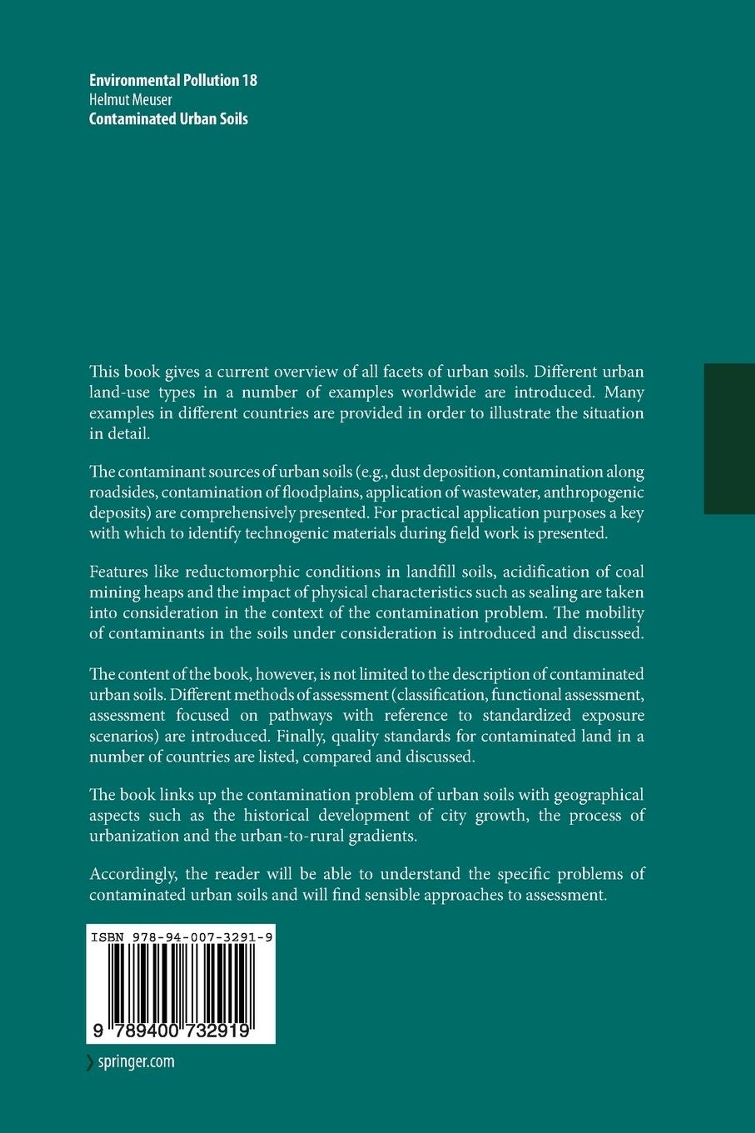 With more than 50% of the worlds population already living in towns and cities, migration from rural areas continuing at an alarming rate in developing countries and suburbanisation using more and more land in developed countries, the urban environment has become supremely important with regard to human health and wellbeing. For centuries, urbanisation has caused relatively low level soil conta- nation mainly by various wastes. However, from the time of the Industrial Revolution onwards, both the scale of urban development and the degree of soil contamination rapidly increased and involved an ever widening spectrum of c- taminants. With constraints on the supply of land for new urban development in many countries, it is becoming increasingly necessary to re-use previously dev- oped (brownfield) sites and to deal with their accompanying suites of contaminants. It is therefore essential to fully understand the diversity and properties of urban soils, to assess the possible risks from the contaminants they contain and devise ways of cleaning up sites and / or minimizing hazards. The author, Helmut Meuser, is Professor of Soil Protection and Soil Clean-up at the University of Applied Sciences, Osnabrück and is one of Europes foremost experts on contamination from technogenic materials in urban soils. He has many years experience of research in Berlin, Essen, Osnabrück, other regions of Germany, and several other countries.