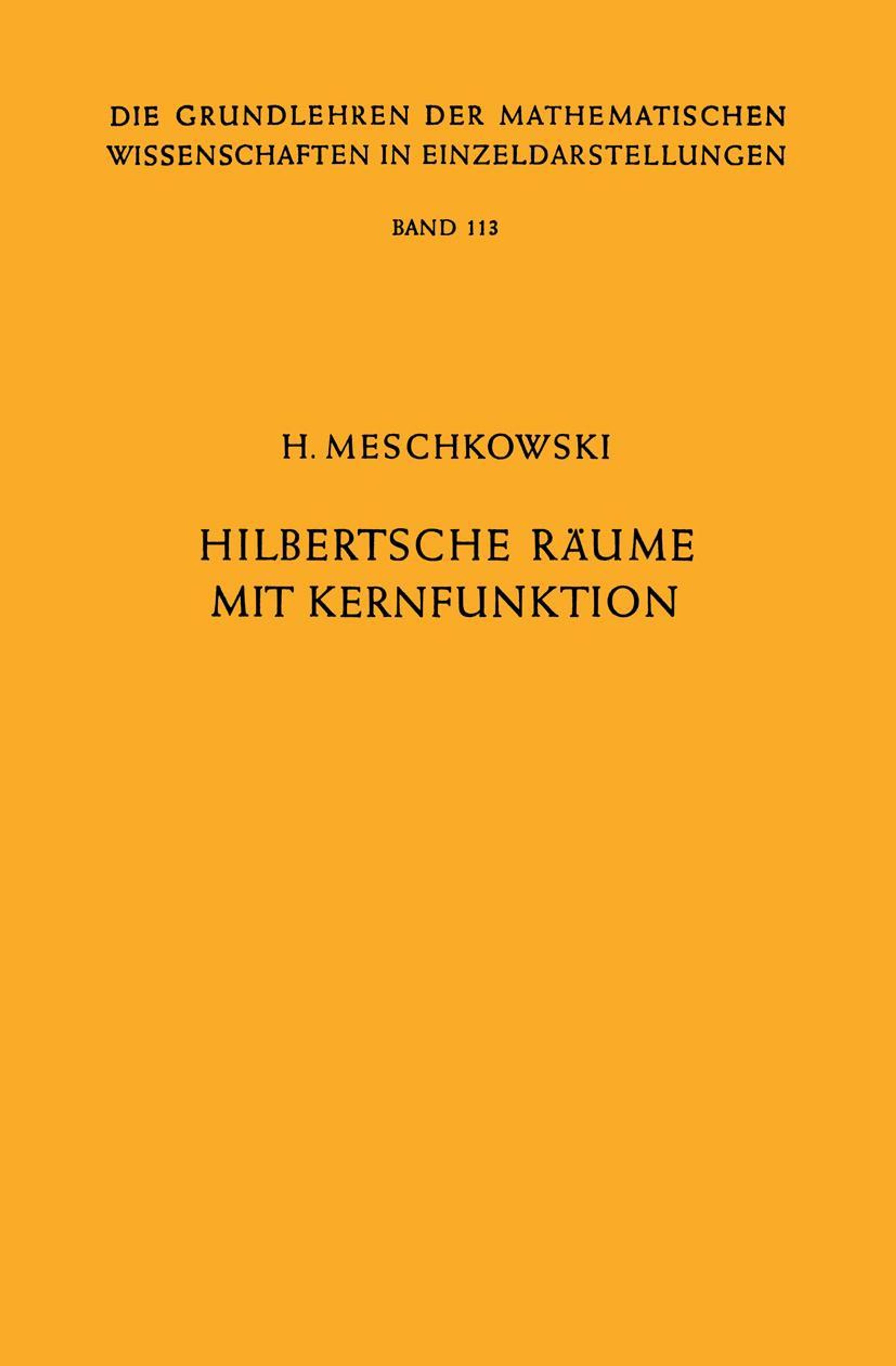 Erstes Kapitel. Einleitung.- Zweites Kapitel. Allgemeine Eigenschaften der Hilbertschen Räume.- § 1. Definitionen.- § 2. Die Orthogonalisierung.- §3. Abgeschlossenheit und Vollständigkeit.- § 4. Separierbarkeit von Hilbertschen Räumen.- § 5. Beispiele.- § 6. Unterräume.- § 7. Lineare Funktionale.- § 8. Lineare Operatoren.- § 9. Eigenwertprobleme für vollstetige Operatoren.- §10. Der Wurzeloperator für symmetrische positive Operatoren.- Drittes Kapitel. Der reproduzierende Kern.- § 1. Grundlegende Eigenschaften.- § 2. Separierbarkeit von Räumen mit Kernfunktion.- § 3. Operatoren in Räumen mit Kernfunktion.- § 4. Ergänzung unvollständiger Räume.- § 5. Vollständige Systeme.- Viertes Kapitel. Beispiele von Hilbertschen Räumen mit reproduzierendem Kern.- § 1. Integralsätze.- § 2. Die Bergmansche Kernfunktion.- § 3. Der reproduzierende Kern für Lösungsfunktionen von partiellen Differentialgleichungen.- § 4. Der Bergman-Kern und die Green-Funktion.- § 5. Approximierung durch rationale Funktionen.- § 6. Der reproduzierende Kern für harmonische Funktionen.- § 7. Der Szegö-Kern.- § 8. Der Bergman-Kern für Funktionen mit mehreren Veränderlichen..- § 9. Die Abhängigkeit der Funktion K(x, x) vom Gebiet.- Fünftes Kapitel. Die Hilbert-Räume positiver Matrizen.- § 1. Positive Matrizen.- § 2. Die Summe zweier Kernfunktionen.- § 3. Die Differenz von Kernen.- § 4. Das Produkt zweier Kernfunktionen.- § 5. Konvergente Folgen von Kernfunktionen.- Sechstes Kapitel. Orthonormalsysteme mit speziellen Eigenschaften.- §1. Interpolation bei endlich vielen Punkten.- § 2. Abzählbar viele Interpolationspunkte.- § 3. Eine Eigenschaft des Bergman-Systems.- § 4. Orthogonalisierung mit Gewichtsfunktionen.- Siebentes Kapitel. Normalabbildungen.- §1. Die Parallelschlitzabbildung.- §2. Die Radial-und Kreisschlitzabbildung.- §3. Die Abbildung auf einen beschränkten Kreisschlitzbereich.- § 4. Beschränkte Funktionen.- § 5. Der Bildbereich von N(z, u).- Achtes Kapitel. Die Darstellung von Funktionen.- § 1. Szegö-Systeme für Funktionen mit Polen.- §2. Darstellung durch Bergman-Systeme.- § 3. Das Poisson-Integral für mehrfach zusammenhängende Bereiche.- §. Weitere Verallgemeinerungen l6l.- § 5. Darstellung durch den Randwinkel.- § 6. Darstellung durch Kerne mit Gewichtsfunktion.- § 7. Abbildung auf den Einheitskreis.- Neuntes Kapitel. Extremalprobleme.- § 1. Eine Eigenschaft der Funktion N'm (z, u).- § 2. Verzerrungssätze für schlichte Funktionen.- §3. Verallgemeinerung des Bieberbachschen Flächensatzes.- § 4. Extremalsätze für den Szegö-Kern.- § 5. Schlichtheitsschranken.- §6. Abschätzung von Restgliedern.- Zehntes Kapitel. Doppelte Orthogonalität.- § 1. Beispiele für vollstetige Operatoren in den Räumen HS und H(B).- § 2. Die zweite Orthogonalitätsrelation.- § 3. Die Vielfachheit des ersten Eigenwertes.- § 4. Eigenschaften quadratischer Formen.- § 5. Beispiele und Verallgemeinerungen.- § 6. Typen von Orthonormalsystemen.- § 7. Ein Approximationsproblem.- § 8. Eigenschaften der Transformation T(B) f.- Elftes Kapitel. Hilbert-Räume aus Lösungen elliptischer Differentialgleichungen.- §1. Definition eines inneren Produktes.- § 2. Hilfssätze.- § 3. Randwertprobleme.- § 4. Fundamentale Singularitäten.- § 5. Die Kernfunktion.- Zwölftes Kapitel. Kernfunktionen in der Theorie der Funktionen von mehreren komplexen Veränderlichen.- § 1. Definitionen und grundlegende Sätze.- § 2. Anwendung der Kernfunktion.- § 3. Minimalbereiche.- §4. Kernfunktion und Hüllenbildung.-§ 5. Die analytische Fortsetzung quadratintegrabler Funktionen.- § 6. Kern und Außenhülle.- § 7. Die allgemeine Bergmansche Metrik und ihre Fortsetzbarkeit.- Namen- und Sachregister.
