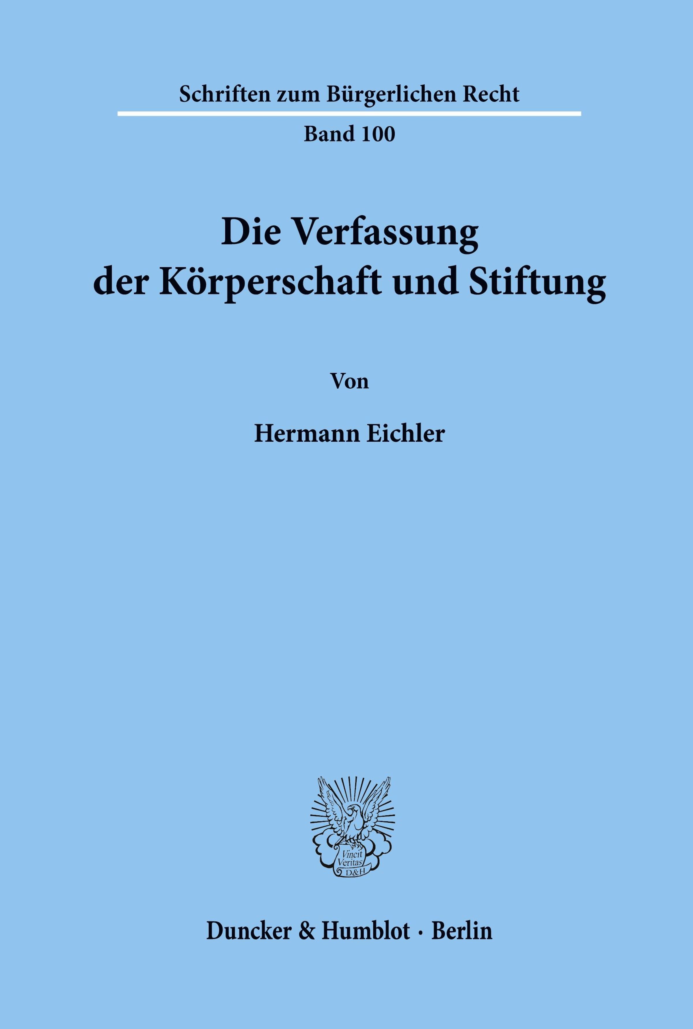 Der Artikel Hermann Eichler: Die Verfassung der Körperschaft und Stiftung. wurde in den Warenkorb gelegt.