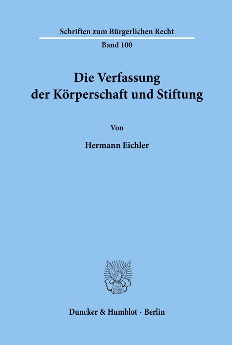 Hermann Eichler: Die Verfassung der Körperschaft und Stiftung., Kartoniert / Broschiert