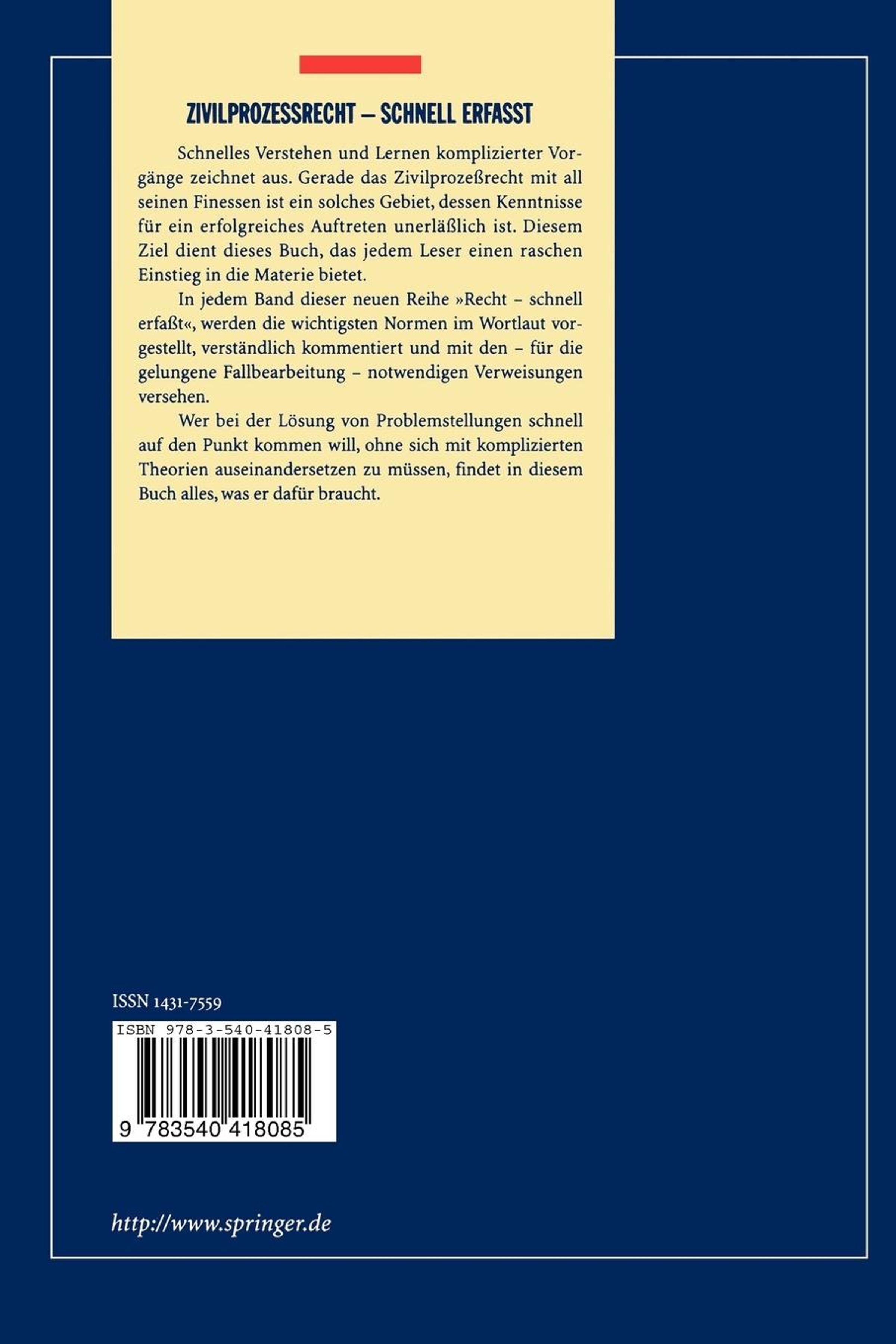 Schnelles Verstehen und Lernen komplizierter Vorgänge zeichnet aus. Gerade das Zivilprozessrecht mit all seinen Finessen ist ein solches Gebiet, dessen Kenntniss für ein erfolgreiches Auftreten unerläßlich ist. Diesem Ziel dient dieses Buch, das jedem Leser einen raschen Einstieg in die Materie bietet.