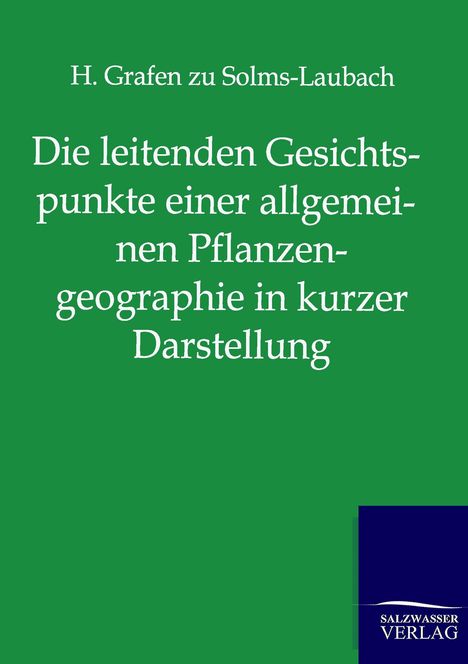 H. Zu Solms-Laubach: Die leitenden Gesichtspunkte einer allgemeinen Pflanzengeographie in kurzer Darstellung, Kartoniert / Broschiert